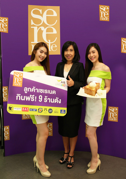 AIS จัดแคมเปญพิเศษให้ลูกค้าเซเรเนดกินฟรี เมนูเด็ดที่ 9 ร้านสุดฮิต อาทิ After You กับเมนู ชิบูย่า ฮันนี่ โทสต์, Greyhound Cafe กับเมนู ก๋วยเตี๋ยวห่อหมูสับ และ DIN TAI FUNG กับเมนู เกี๊ยวไส้กุ้งผสมหมูสับ เป็นต้น รวมทั้งมอบส่วนลดสูงสุดถึง 50% ร้านอาหารยอดนิยมกว่า 400 ร้าน ที่ศูนย์การค้าเซ็นทรัล 30 สาขาทั่วประเทศ ทั้งเซ็นทรัลเวิลด์, เซ็นทรัลพลาซา และเซ็นทรัลเฟสติวัล ตั้งแต่วันนี้ - 30 มิ.ย. 60