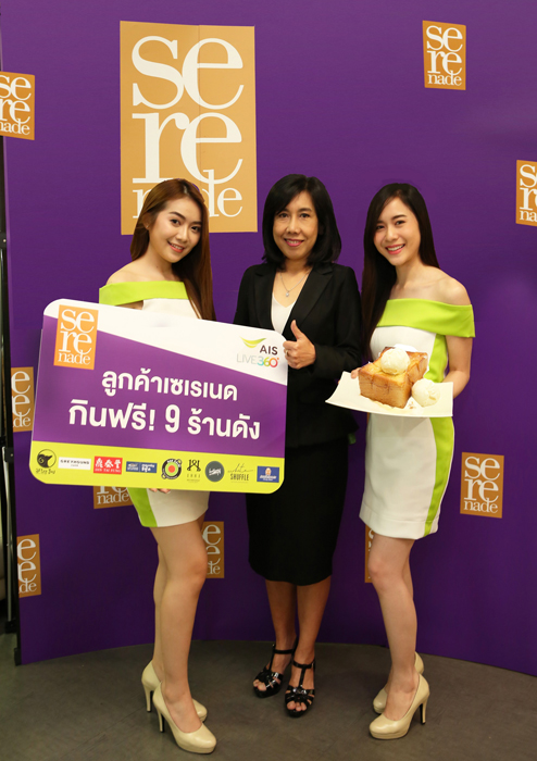 และหลังจาก AIS มอบส่วนลดสูงสุดถึง 50% ร้านอาหารยอดนิยมกว่า 400 ร้าน ที่ศูนย์การค้าเซ็นทรัล 30 สาขาทั่วประเทศ ทั้งเซ็นทรัลเวิลด์, เซ็นทรัลพลาซา และเซ็นทรัลเฟสติวัล ให้ลูกค้าทุกท่านแล้ว ล่าสุด AIS จัดเต็มความพิเศษเพิ่มเติมให้ลูกค้าเซเรเนด ด้วยแคมเปญ “กินฟรีเมนูเด็ด” ที่ 9 ร้านดัง ซึ่งเป็นที่ชื่นชอบของลูกค้า ได้แก่