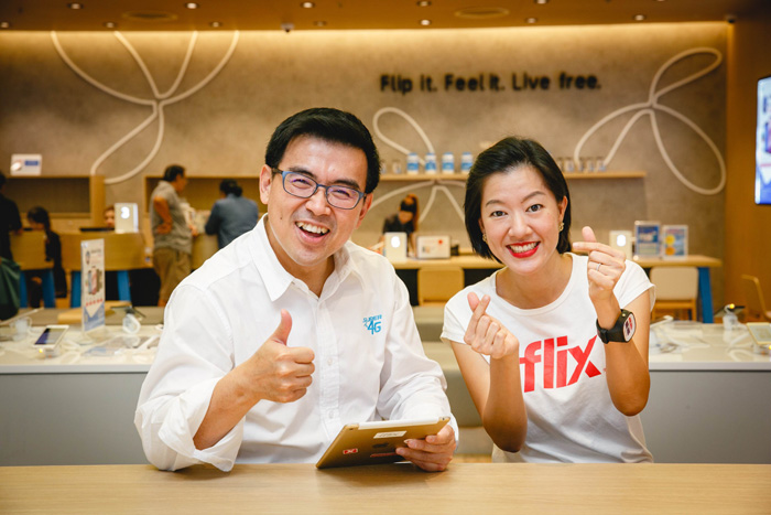 นายไชยวัฒน์ อุดมศรีรุ่งเรือง ผู้อำนวยการอาวุโส Branded Retail Sale บริษัท โทเทิ่ล แอ็คเซ็ส คอมมูนิเคชั่น จำกัด (มหาชน) หรือดีแทค และนางสาวอาทิมา สุรพงษ์ชัย บริษัท ไอฟลิกซ์ (ประเทศไทย) จำกัด มอบสิทธิพิเศษให้ลูกค้าดีแทครายเดือนสนุกกับซีรีส์และหนังออนไลน์ตลอด 6 เดือนเต็ม ในโอกาสฉลองศูนย์บริการดีแทค “ดีอินฟินิท” (dInfinite) สาขาใหม่ ที่เดอะมอลล์ บางกะปิ สาขาเรือธงในรูปแบบดิจิทัล ภายใต้แนวคิด Smart Services พลิกกระบวนการให้บริการและจัดระบบการขายแบบดิจิทัล
