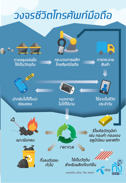 นางอรอุมา ฤกษ์พัฒนาพิพัฒน์ ผู้อำนวยการอาวุโส สายงานสื่อสารองค์กรและการพัฒนาอย่างยั่งยืน บมจ.โทเทิ่ล แอ็คเซ็ส คอมมูนิเคชั่น หรือดีแทค กล่าวว่า “ปัจจุบัน ประเทศไทยมีผู้ใช้โทรศัพท์มือถือจำนวน 83 ล้านเลขหมาย โดยทั่วไป โทรศัพท์มือถือมีวงจรชีวิตสั้นกว่า 2 ปี แบตเตอรี่มีวัฏจักรชีวิตของการชาร์จที่ 200 รอบ หรือ 1 ปี 4 เดือน นอกจากนั้น ความก้าวหน้าทางเทคโนโลยียังส่งผลต่อการพัฒนาผลิตภัณฑ์ใหม่เพื่อสนองตอบความต้องการและรูปแบบการใช้งานใหม่ๆ รวมถึงราคาของสมาร์ทโฟนที่ต่ำกว่า 10,000 บาท ง่ายต่อการตัดสินใจซื้อ ยอดขายสมาร์ทโฟนจึงเพิ่มขึ้นร้อยละ47  โดยมีจำนวนถึง 22 ล้านเครื่อง ในปี 2558 โดยผู้บริโภคอาจลืมนึกถึงการจัดการผลิตภัณฑ์เก่าที่ไม่ต้องการ และซากของผลิตภัณฑ์ที่เสื่อมสภาพหรือหมดอายุ”