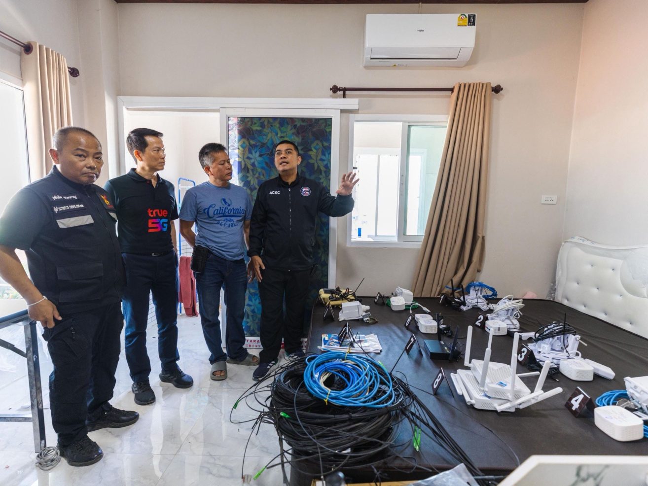 ปฏิบัติการดังกล่าวเกิดขึ้นในช่วงเช้าตรู่วันที่ 13 กุมภาพันธ์ 2569 โดยตำรวจ บก.ปอท. นำตรวจค้นอาคารต้องสงสัยแห่งหนึ่งใน อ.แม่สาย จ.เชียงราย ร่วมกับทรู และ สำนักงาน กสทช. พร้อมผู้ให้บริการรายอื่น หลังได้รับข้อมูลจากทรูเพื่อสืบสวนและติดตามเบาะแสเกี่ยวกับการใช้งานอินเทอร์เน็ตในลักษณะผิดปกติ โดยพบว่ามีปริมาณการใช้งานสูงต่อเนื่องเป็นเวลานาน และยังมีการใช้งานหนาแน่นเป็นพิเศษในช่วงกลางคืน ซึ่งเป็นลักษณะที่เข้าข่ายต้องสงสัย จึงประสานทรูเพื่อสนับสนุนข้อมูลเชิงเทคนิคและร่วมตรวจสอบในพื้นที่