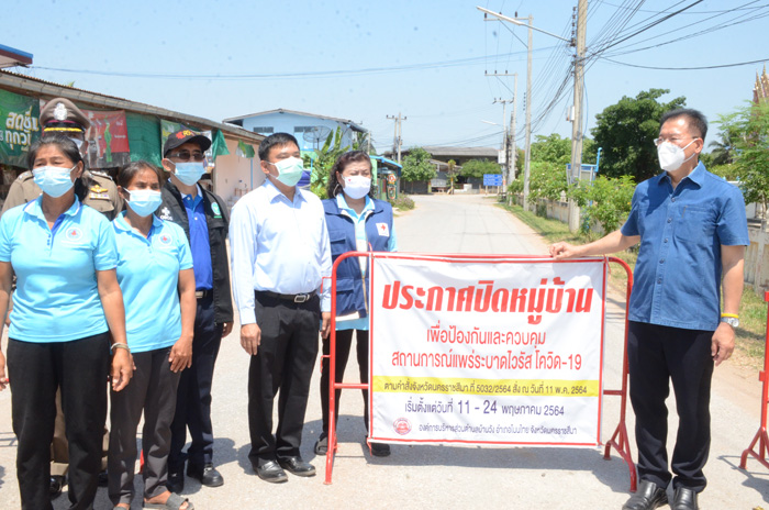 บ่ายวันนี้( 14 พ.ค. 64 ) นายวิเชียร จันทรโณทัย ผุ้ว่าราชการจังหวัดนครราชสีมาพร้อมคณะได้เดินทางลงพื้นที่ บ้านวัง ม.3 ต.บ้านวัง อ.โนนไทย จ.นครราชสีมา นำสิ่งถุงยังชีพจากสำนักงานกาชาดจังหวัด จำนวน200 ชุด ไปมอบให้กับชาวบ้านที่ถูกกักตัวและเจ้าหน้าที่ที่ปฏิบัติหน้าที่ปิดหมู่บ้านบ้านวัง ม.3 ต.บ้านวัง อ.โนนไทย หลังจากพบผู้ป่วยติดเชื้อโควิด-19จากการแพร่ระบาดจากคลัสเตอร์โรงงานกุนเชียงชื่อดังในเขต อ.เมืองนครราชสีมา จำนวน 5 รายโดยทางจังหวัดได้สั่งปิดหมู่บ้านดังกล่าวเป็นเวลา14วัน ตั้งแต่วันที่ 11-24พ.ค.นี้มีราษฏรในหมู่บ้านดังกล่าวจำนวน 127 หลังคาเรือนรวม 462 คน โดยในพื้นที่อ.โนนไทยพบผู้ติเชื้อ 11ราย รักษาหายแล้ว 6 ราย