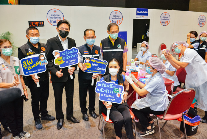 ขณะที่ที่ห้อง MCC ฮอลล์ ชั้น 3 ศูนย์การค้าเดอะมอลล์ อ.เมือง จ.นครราชสีมา ดร.ยลดา หวังศุภกิจโกศล นายกองค์การบริหารส่วนจังหวัดนครราชสีมา พร้อมผู้บริหาร อบจ.นครราชสีมา โดยมีนายแพทย์จิรศักดิ์ วิจักขณาลัญฉ์ ผู้อำนวยการโรงพยาบาลเทพรัตน์นครราชสีมา เดินทางไปตรวจเยี่ยมจุดบริการฉีดวัคซีนให้กับประชาชนที่ลงทะเบียนกับสาธารณสุขจังหวัดนครราชสีมา ซึ่งวันนี้เป็นวันที่สองของการฉีดวัคซีนให้กับประชาชนกลุ่มเสี่ยง 2 กลุ่ม ได้แก่กลุ่มผู้สูงอายุ 60 ปี และขึ้นไป และกลุ่มผู้ป่วย 7 โรคเรื้อรัง โดยมีพี่น้องประชาชนจำนวนมากแห่กว่า 500 คนไปรับบัตรคิวตรวจวัดความสมสมบูรณ์ของร่างกายก่อนเข้าทำการฉีดวัคซีน รวมทั้งยังเปิดให้บริการฉีดวัคซีนให้กับประชาชนทั่วไปที่จองคิวผ่านช่องทางต่างๆ โดยบรรยากาศมีประชาชนเดินทางมาฉีดวัคซีนกันเป็นจำนวนมาก โดย ดร.ยบดฯได้ร่วมฉีดวัคซีนเข็ม แรก 1 โดสด้วย บรรยากาศเป็นไปอย่างคึกคัก