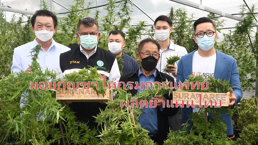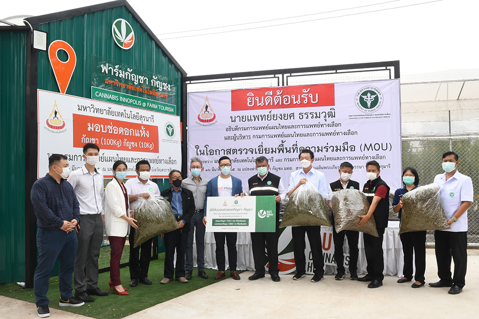 มหาวิทยาลัยเทคโนโลยีสุรนารี (มทส.) ส่งมอบช่อดอกกัญชา-กัญชงแห้ง กว่า 100 กิโลกรัม ให้กรมการแพทย์ แผนไทยฯ เพื่อนำไปใช้ประโยชน์ตามกระบวนการผลิตยาแผนไทย 2 ตำรับ พร้อมเปิดคลังวัตถุดิบกลางเก็บผลผลิต และเปิดพื้นที่ 28 ไร่ ขยายโรงเรือนปลูกมาตราฐาน 70 โรง รองรับเครือข่ายวิสาหกิจชุมชนรายใหญ่และรายย่อยจาก ทั่วประเทศที่มีความร่วมมือเข้ารับการถ่ายทอดเทคโนโลยีด้านกัญชาจาก มทส. อย่างครบวงจรแห่งแรกของประเทศ