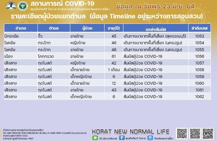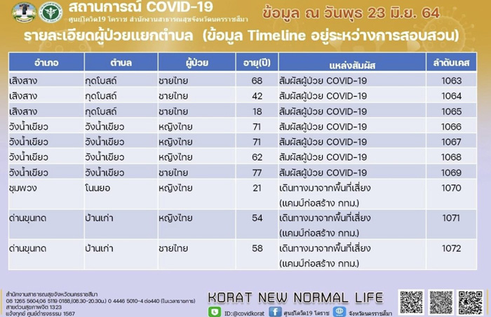 กลับมาพุ่งอีก!โคราชยอดผู้ป่วยโควิดเพิ่มรวดเดียว 20 รายสะสมทะลุ 1,000คน เตรียมทบทวนมาตรการผ่อนปรน