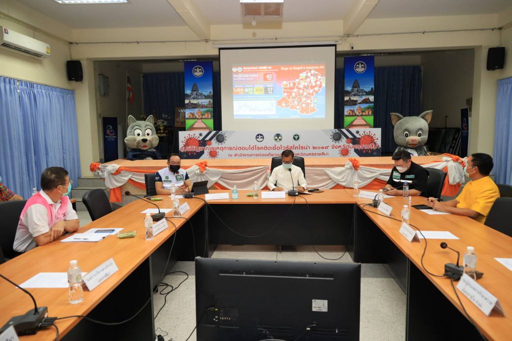 นายแพทย์วิชาญ คิดเห็น รอง นพ.สาธารณสุขจังหวัดนครราชสีมา กล่าวในที่ประชุมว่า สถานณ์ ณ ตอนนี้แย่ลง ซึ่ง จ.นครราชสีมาใกล้จะเหมือนกรุงเทพฯทุกขณะ ทุกพื้นที่ในพื้นที่จังหวัดนครราชสีมาทั้ง 32 อำเภอ ถือว่าเป็นพื้นที่สุ่มเสี่ยงมาก ดังนั้นขอให้ประชาชนทุกคนต้องช่วยกันดูแลตัวเองไม่ให้ติดเชื้อทั้งตนเองและคนในครอบครัว โชคดีที่ทาง จังหวัดสั่งปิดโรงเรียนได้ทันก่อนเกิดการระบาดภายในโรงเรียน พร้อมให้ประชาชนเตรียมพร้อมรับมือกับสถานการณ์หากสถานการณ์แย่ลง ผู้ติดเชื้อส่วนใหญ่ติดจากกลุ่มที่เดินทางมาจากพื้นที่เสี่ยง และการติดเชื้อภายในครอบครัว ดังนั้นทุกอำเภอจำเป็นต้องมีพื้นที่กักตัวในแต่ละอำเภอ เนื่องจากพื้นที่รองรับผู้ป่วยใน รพ.มหาราชนครราชสีมา หนาแน่แล้ว ห้อง icu เต็ม ส่วนเตียงผู้ป่วยมีการใช้ไปแล้ว 70-80 เปอร์เซ็นต์ ทั้งนี้ยอดผู้ป่วยที่ยังรักษาอยู่ ใน รพ.จำนวน 319 ราย นั้น หากมีผู้ป่วยรักษาเกิน 400 ราย จะต้องมีการพิจารณาเปิดใช้ รพ.สนามทันที เพื่อรองรับกับผู้ป่วยที่เพิ่มมากขึ้น สำหรับจำนวนผู้ป่วยที่เป็นชาวโคราชที่ป่วยในพื้นที่ กทม.และยังไม่มี รพ.รักษา และได้ประสานขอมารักษาตัวที่ รพ.ในพื้นที่จังหวัดนครราชสีมา นั้นขณะนี้มีการประสานมาแล้ว จำนวน 41 ราย ซึ่งเบื้องต้นขั้นตอนแรกในการรับตัวผู้ป่วยจากนอกพื้นที่มารักษาในจังหวัด ทางจังหวัดได้เร่ง ประสานหา รพ.ในพื้นที่ กทม.ให้ก่อนเป็นอันดับแรกแล้ว เพื่อลดการเคลื่อนย้ายผู้ป่วย หากไม่สามารถหาให้ได้ก็จะนำตัวมารักษาที่ รพ.ในพื้นที่จังหวัดนครราชสีมา ทันที