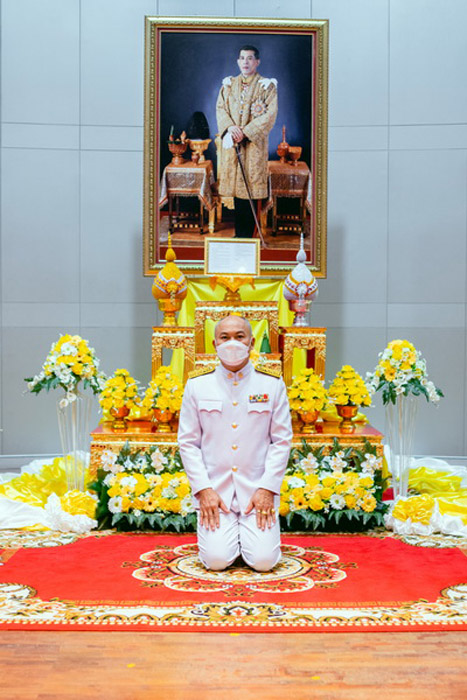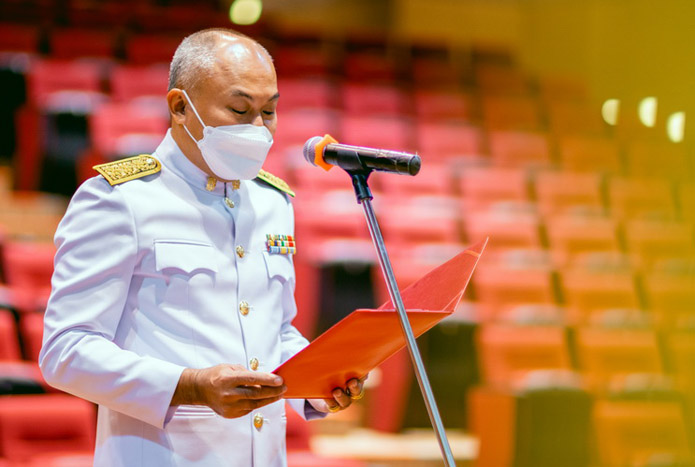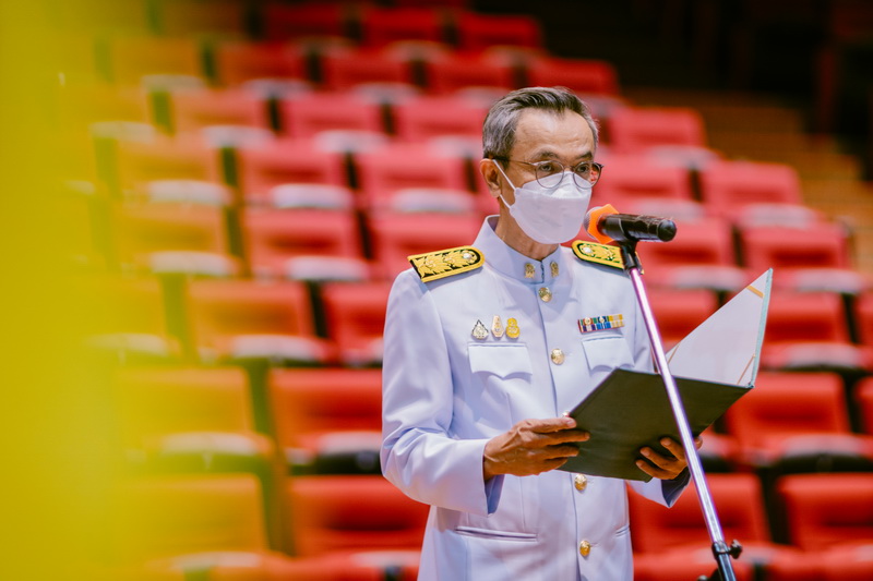 จากนั้น ผู้ช่วยศาสตราจารย์ ดร. อดิศร เนาวนนท์ อธิการบดีมหาวิทยาลัยราชภัฏนครราชสีมา เป็นผู้อ่านประกาศสำนักนายกรัฐมนตรี และ ศาสตราจารย์ ดร.สามารถ จับโจร เปิดกรวยกระทงดอกไม้ด้านหน้าพระบรมฉายาลักษณ์ พระบาทสมเด็จพระปรเมนทรรามาธิบดีศรีสินทรมหาวชิราลงกรณ พระวชิรเกล้าเจ้าอยู่หัว ถวายความเคารพและกล่าวสำนึกในพระมหากรุณาธิคุณ มีใจความว่า “จะทุ่มเททำงานตามมาตรฐานจริยธรรมด้วยความซื่อสัตย์สุจริต โดยยึดถือผลประโยชน์ของประเทศชาติและประชาชนเป็นสำคัญจะเพียรพยายามมุ่งมั่นทำงานในหน้าที่ให้เกิดประโยชน์ต่อวงวิชาการ สืบสานพระราชปณิธานของพระบาทสมเด็จพระเจ้าอยู่หัว และพร้อมปฏิบัติหน้าที่ด้านการศึกษาอย่างเต็มกำลัง พร้อมจะปกป้องรักษาไว้ ซึ่งเกียรติภูมิแห่งสถาบันชาติ ศาสนา ตลอดจนจงรักภักดีต่อสถาบันพระมหากษัตริย์ อันเป็นที่รักยิ่งของประชาชนชาวไทยสืบไป”