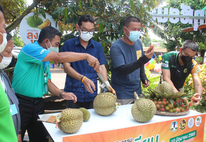 โดยในกิจกรรมนายอำเภอครบุรีพร้อมเกษตรอำเภอครบุรี ได้นำการเบิกร่องตัดพร้อมชวนชิมทุเรียนลูกปฐมฤกษ์ชุดแรกของสวนแห่งนี้  ที่ได้ผ่านการตรวจเช็คคุณภาพแน่นอนแล้วว่าแก่จัด เพื่อสร้างความมั่นใจให้กับลูกค้าที่จะมาเลือกซื้อทุเรียนที่สวนแห่งนี้ และหลังจากนี้จะมีการส่งเสริมให้เกษตรกรผู้ปลูกทุเรียนในพื้นที่ ได้เรียนรู้ในการสร้างมาตรฐานในการตัดทุเรียนส่งลูกค้าเพื่อให้ทุเรียนของอำเภอครบุรี  เป็นทุเรียนที่ได้มาตรฐานแก่จัดและสามารถการันตีคุณภาพให้กับลูกค้าได้ทุกลูก