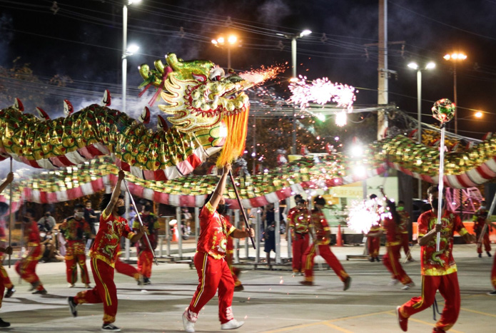 บรรยากาศภายในงานมีประชาชนชาวไทยเชื้อสายจีน รวมถึงประชาชนทั่วไป เข้าร่วมชมการแสดงกายกรรมเชิดมังกร-สิงโตกันอย่างทั่วหน้าตื่นเต้นกับสิงโตกระโดดผาดโผนบนเสาดอกเหมย,อลังการตระการตากับมังกรทอง ความยาวมากกว่า 109 เมตร ไต่เสาผาดโผนทะยานฟ้าด้วยความสูงมากกว่า 60 เมตร เรียกเสียงปรบมือจากผู้ที่ชมในงานอย่างกึ่งก้อง ร่วมมอบส้มมงคลและคำอวยพรพู่กันจีนหลิวเหล่าซือ จากอ.ชาลี โดยกิจกรรมดังกล่าวจัดขึ้นวันที่ 30 ม.ค 65 ณ ลานกิจกรรมหน้าศูนย์การค้าเซ็นทรัล โคราช