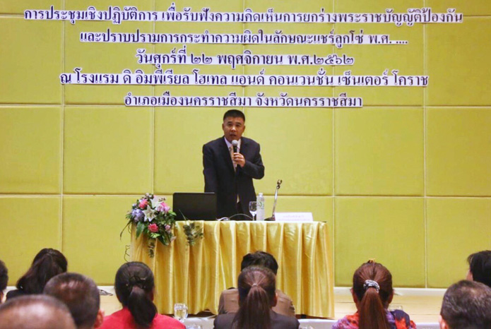 โคราชระดมสมองยกร่าง พ.ร.บ.ป้องกันและปราบปรามการกระทำความผิดในลักษณ์แชร์ลูกโซ่ ที่โรงแรมดิอิมพีเรียล