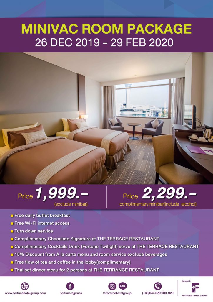 MINIVAC ROOM PACKAGE ข้อเสนอสุดพิเศษ กับแพคเกจห้องพักโรงแรมฟอร์จูน ราชพฤกษ์ นครราชสีมา
