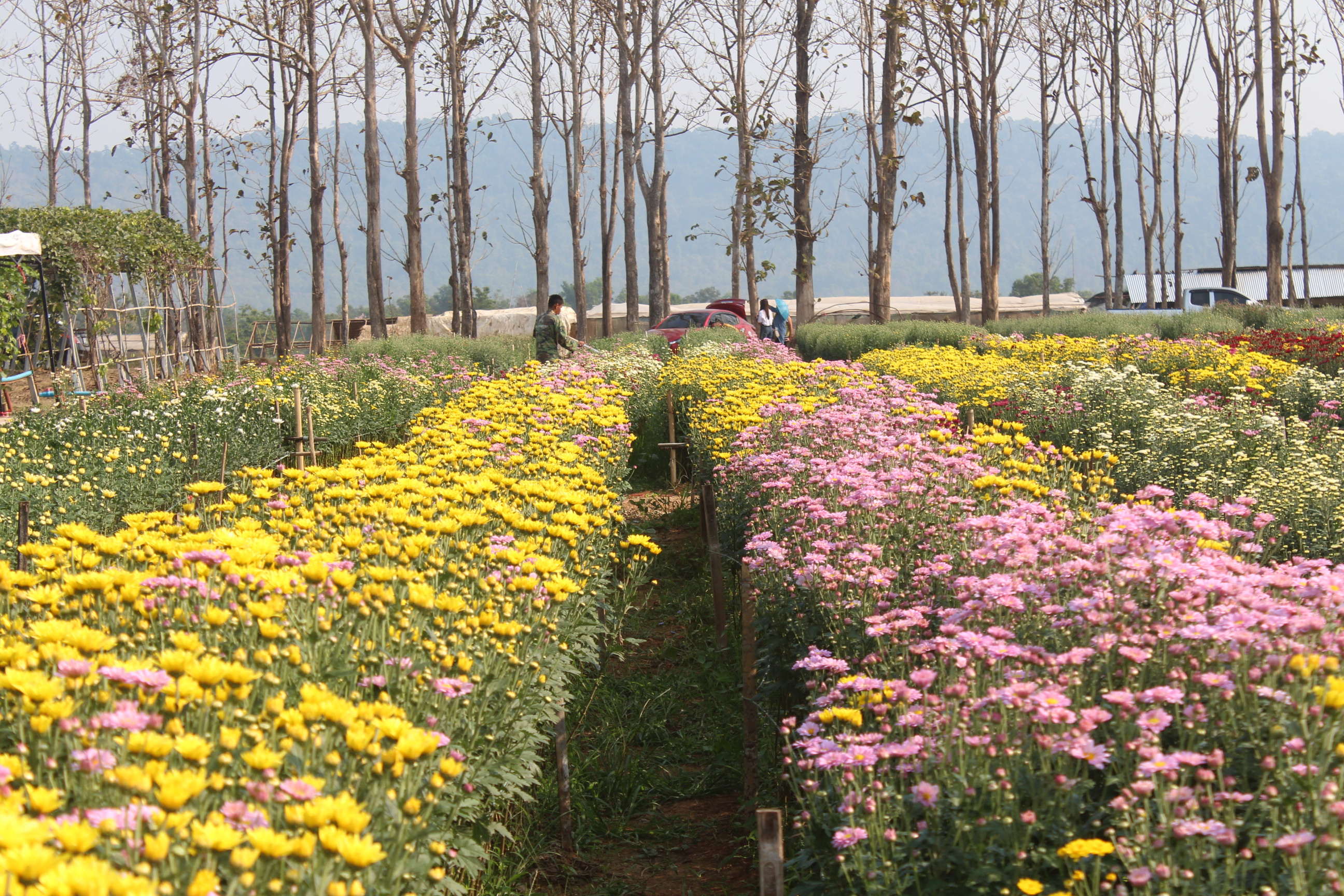 หลังสภาพอากาศในช่วงนี้เริ่มกลับมาหนาวเย็นอีกครั้ง ทำให้บรรยากาศการท่องเที่ยวในอำเภอวังน้ำเขียว จ.นครราชสีมา เริ่มกลับมาคึกคักเช่นเดียวกัน โดยเฉพาะที่จุดเตรียมจัดงานเทศกาลดอกเบญจมาศบานในม่านหมอก ครั้งที่ 18 ที่บริเวณด้านข้างองค์การบริหารส่วนตำบลไทยสามัคคี จะมีขึ้นระหว่างวันที่ 13 – 23 ก.พ.นี้ เริ่มที่นักท่องเที่ยวเข้าไปเที่ยวชมและถ่ายรูปกับสวนเบญจมาศหลากสีสันที่กำลังออกดอกบานสะพรั่งสวยงามทั่วบริเวณสถานที่จัดงานกว่า 50 ไร่
