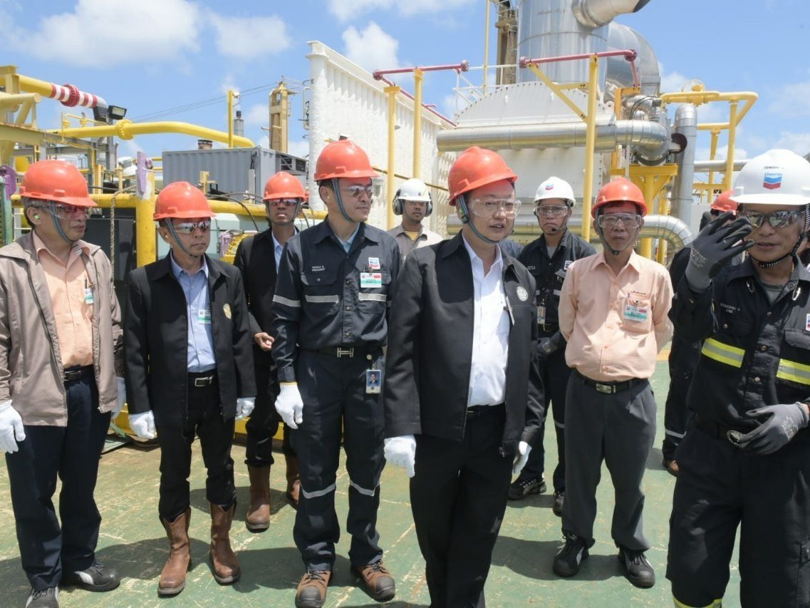“นอกเหนือจากการตรวจเยี่ยมการดำเนินงานแล้ว ยังถือเป็นโอกาสในการศึกษาเรื่องศักยภาพของแหล่งปิโตรเลียมในประเทศไทยเพื่อเตรียมความพร้อมสำหรับการเปิดยื่นขอสิทธิสำรวจและผลิตปิโตรเลียม ครั้งที่ 23 บริเวณทะเลอ่าวไทย ประมาณช่วงเดือนเมษายน 2563 นี้ เพื่อเปิดโอกาสให้ประเทศได้มีการพัฒนาแหล่งปิโตรเลียมใหม่ๆ และรักษาระดับปริมาณการผลิตปิโตรเลียมในประเทศไม่ให้ลดลง โดยความคืบหน้า ในขณะนี้ทางกรมเชื้อเพลิงธรรมชาติ อยู่ในระหว่างการพิจารณากำหนดพื้นที่แหล่งปิโตรเลียม ระบบการบริหารจัดการ หลักเกณฑ์และเงื่อนไขสำหรับการเปิดให้สิทธิสำรวจและผลิตปิโตรเลียมรอบใหม่ จากนั้นจะใช้เวลาประมาณ 1 ปี ในการดำเนินการตามขั้นตอนต่างๆ ตั้งแต่การเปิดให้เอกชนเข้ามาศึกษาข้อมูลไปจนถึงประกาศผู้ชนะการประมูล โดยคาดว่าจะมีการลงนามกับผู้ชนะการประมูลประมาณต้นปี 2564 และจะก่อให้เกิดเม็ดเงินลงทุนในเบื้องต้นกว่า 1,500 ล้านบาท รวมถึงการต่อยอดให้เกิดการลงทุนในอุตสาหกรรมปิโตรเลียมในประเทศเพิ่มขึ้นเป็นหมื่นล้านบาทหากมีการสำรวจพบปิโตรเลียม และประโยชน์ที่ตามมานั้นไม่ใช่แค่ความมั่นคงด้านพลังงาน แต่หมายถึงความเชื่อมั่นของภาคการลงทุน การสร้างรายได้ให้กับประเทศ สร้างงาน สร้างอาชีพที่มั่นคงให้คนไทยตลอดจนขับเคลื่อนการเจริญเติบโตให้กับธุรกิจต่อเนื่องอื่น ๆ อาทิ ธุรกิจเกี่ยวกับการสร้างแท่นผลิตปิโตรเลียม ร้านอาหาร โรงแรม และภาคขนส่งอีกด้วย” รัฐมนตรีว่าการกระทรวงพลังงาน กล่าว