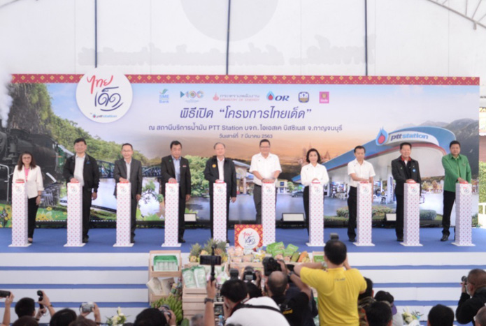 นางสาวจิราพร กล่าวว่า โออาร์ ดำเนินธุรกิจโดยเปิดโอกาสให้ผู้มีส่วนได้ส่วนเสียทุกกลุ่มได้ร่วมออกแบบรูปแบบทางธุรกิจร่วมกับ โออาร์ เพื่อช่วยกันสร้างประโยชน์ให้กับสังคมชุมชน รวมถึงการสร้างคุณค่าร่วมให้เกิดแก่ผู้มีส่วนได้ ส่วนเสียทุกกลุ่มอย่างสมดุล โออาร์ จึงดำเนินธุรกิจสถานีบริการน้ำมัน พีทีที สเตชั่น ด้วยแนวคิด ลีฟวิ่ง คอมมิวนิตี้ (Living Community) เพื่อให้สถานีบริการน้ำมันฯ ที่มีจำนวนกว่า 1,900 แห่งทั่วประเทศ เป็นศูนย์กลางของชุมชน ในการร่วมกันพัฒนาคุณภาพชีวิตและเศรษฐกิจชุมชน โดยได้ร่วมกับหน่วยงานพันธมิตร ได้แก่ กระทรวงพลังงาน โดยกรมพัฒนาพลังงานทดแทนและอนุรักษ์พลังงาน กระทรวงพาณิชย์ โดยกรมพัฒนาธุรกิจการค้า ธนาคารพัฒนาวิสาหกิจขนาดกลาง และขนาดย่อมแห่งประเทศไทย ธนาคารเพื่อการเกษตรและสหกรณ์การเกษตร ธนาคารออมสิน และผู้ประกอบการธุรกิจสถานีบริการน้ำมัน พีทีที สเตชั่น จัดตั้งโครงการไทยเด็ดขึ้นเป็นครั้งแรกเมื่อปี 2561 ซึ่ง “ไทยเด็ด” สื่อถึงผลิตภัณฑ์ที่เป็นของดีของเด็ดในท้องถิ่นต่าง ๆ ทั่วประเทศที่เกิดจากการร่วมกันพัฒนาคุณภาพผลิตภัณฑ์ สร้างมูลค่าเพิ่มให้กับภูมิปัญญาท้องถิ่น ตลอดจนการสร้างวิสาหกิจชุมชนให้มีศักยภาพพึ่งพาตนเองได้ โดย โออาร์ ได้คัดสรรผลิตภัณฑ์ไทยเด็ดมาวางจำหน่ายในร้านขายของฝากภายใต้ชื่อ “มุมไทยเด็ด” อีกทั้งยังได้จัดสรรพื้นที่ภายใน สถานีบริการน้ำมันฯ เพื่อเปิดเป็นพื้นที่สำหรับ “ตลาดไทยเด็ด” ให้เกษตรกร วิสาหกิจชุมชน และผู้ประกอบการ นำผลิตผลทางการเกษตร อาหาร และสินค้าหัตถกรรมงานฝีมือที่มีชื่อเสียงและเป็นเอกลักษณ์ของท้องถิ่นมาจำหน่าย นอกจากนี้ ยังจัดกิจกรรม “ไทยเด็ด แมชชิ่ง เดย์” โดยเชิญผู้แทนจำหน่ายสถานีบริการน้ำมันฯ จากจังหวัดต่าง ๆ มาคัดเลือกผลิตภัณฑ์ของผู้ประกอบการวิสาหกิจชุมชน เพื่อนำไปวางจำหน่าย ณ “มุมไทยเด็ด” ภายในสถานีบริการน้ำมันฯ ของตนเอง เพื่อเพิ่มช่องทางการจำหน่ายผลิตภัณฑ์ สร้างโอกาสในการขยายตลาด และสร้างรายได้เพิ่มให้กับผู้ประกอบการวิสาหกิจชุมชน