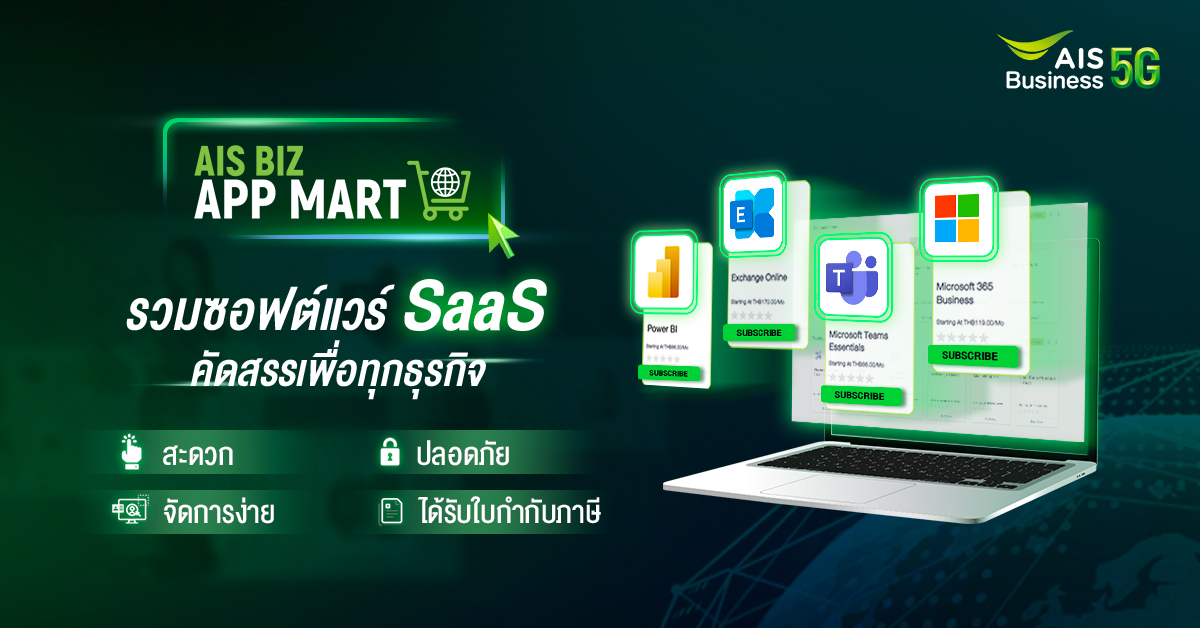 AIS Business ตอกย้ำความมุ่งมั่นในการสนับสนุนและเคียงข้างภาคธุรกิจไทยให้แข็งแกร่ง สร้างความได้เปรียบทางการแข่งขัน พร้อมทรานส์ฟอร์มองค์กรจากเครื่องมือดิจิทัล ล่าสุดเปิดตัว “AIS Biz App Mart สุดยอดมาร์เก็ตเพลสศูนย์รวมซอฟต์แวร์เพื่อธุรกิจ รายแรกในไทย” (Software as a service marketplace) ให้ภาคธุรกิจสามารถบริหารจัดการดิจิทัลโซลูชันและซอฟต์แวร์ได้ง่าย ครบ จบในที่เดียวด้วยตัวเองตลอด 24 ชั่วโมง โดยเปิดตัวด้วยการจับมือไมโครซอฟท์ นำเสนอบริการ Microsoft 365 Licenses แบบครบวงจร รวมไปถึงเครื่องมือเพื่อธุรกิจโดยเฉพาะ อาทิ Power BI เพื่อสร้างความสามารถด้านการนำข้อมูลมาใช้ในธุรกิจยุคใหม่ และ Exchange Online ระบบอีเมลที่ออกแบบมาเพื่อภาคธุรกิจ