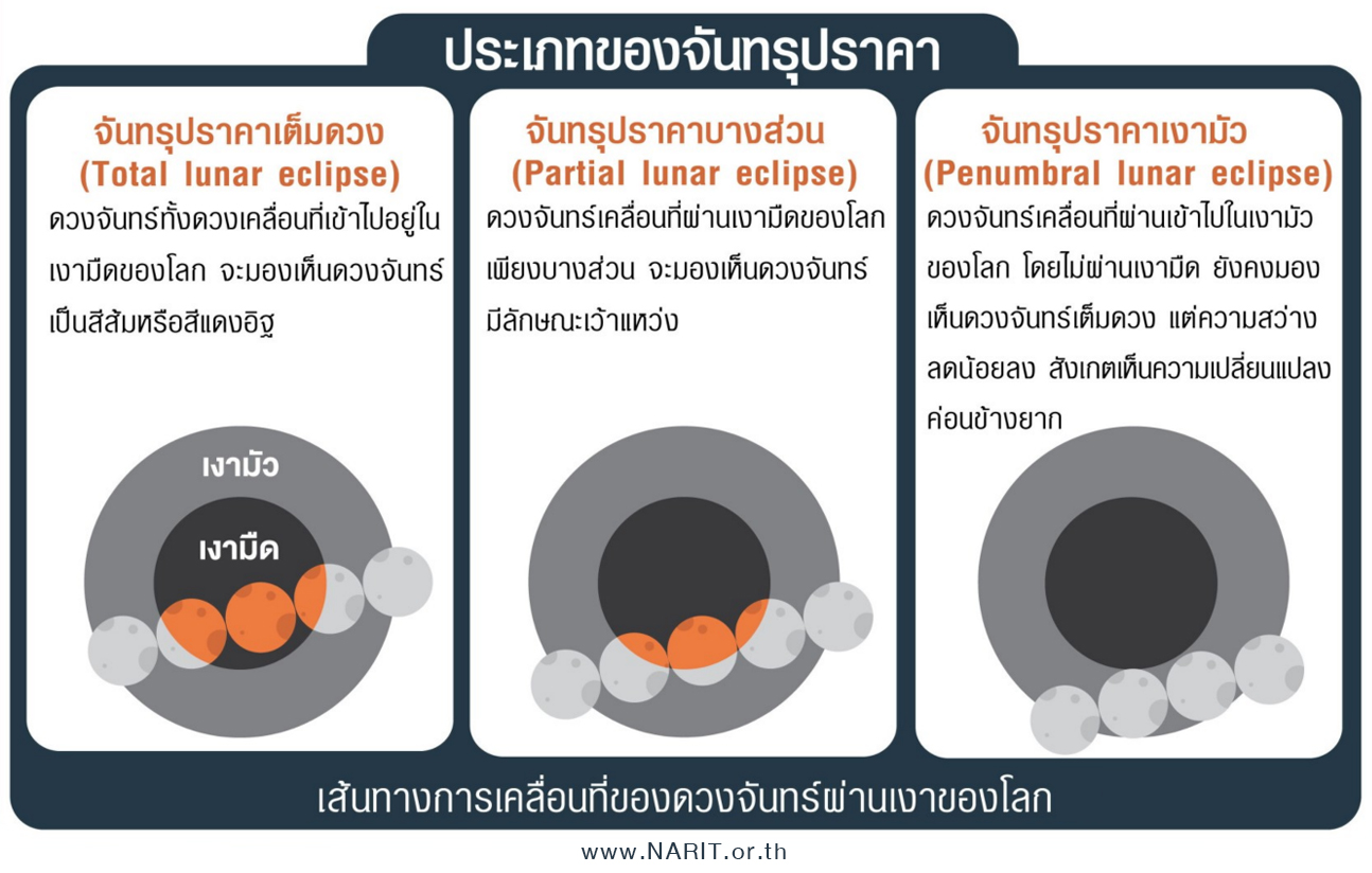 พิเศษ ! คืนวันที่ 8 พฤศจิกายน 2565 สดร. จัดกิจกรรมสังเกตการณ์จันทรุปราคาเต็มดวงคืนวันลอยกระทง พบกันได้ที่จุดสังเกตการณ์หลักทั้ง 4 แห่ง ได้แก่ อุทยานดาราศาสตร์สิรินธร อ. แม่ริม จ. เชียงใหม่ และหอดูดาวเฉลิมพระเกียรติ 7 รอบ พระชนมพรรษา นครราชสีมา ฉะเชิงเทรา สงขลา เวลา 18:00 - 22:00 น. ฟรี! ไม่มีค่าใช้จ่าย สอบถามรายละเอียดเพิ่มเติมโทร. 081-8854353