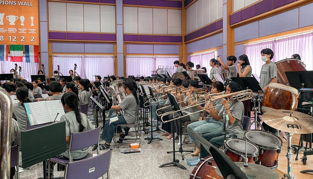 นายอภิวุฒิ มินาลัย ผู้ควบคุมวงดุริยางค์โรงเรียนสุรนารีวิทยา เปิดเผยว่า โรงเรียนสุรนารีวิทยามีนักดนตรีเป็นนักเรียนหญิงล้วนและครูผู้ฝึกสอนรวมจำนวน 100 คน มีนางสาวนาฏอนงค์ ประพิณ หัวหน้ากลุ่มสาระการเรียนรู้ศิลปะ เป็นผู้จัดการวง ซึ่งได้เตรียมบทเพลงที่จะใช้แสดงเป็นเพลงชุดเดียวกับที่เคยประกวดในเทศกาลวงดุริยางค์เครื่องลมโลก ณ กรุงปราค สาธารณรัฐเชคในเมื่อปี 2020 และเพิ่มบทเพลงใหม่ที่มีเอกลักษณ์และประพันธ์ขึ้นสำหรับวงดุริยางค์หญิงล้วนโดยเฉพาะ ส่วนชื่อเพลงขอยังไม่เปิดเผย เนื่องจากเป็นการ Battle เพื่อความสนุกสร้างสีสันของงาน คือมัการเซอร์ไพรส์ ทั้งในรูปแบบและเพลงในการแสดงกับทีมอื่นๆ