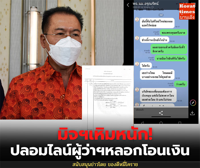 เจอเอง! ผู้ว่าฯ โคราชถูกมิจฉาชีพคุกคามเหิมปลอมไลน์ส่งข้อความขอเงินทั่วเมืองล่าสุดแจ้งความไว้ที่ สภ.เมืองโคราช ขออย่าหลงเชื่อตกเป็นเหยื่ออย่างเด็ดขาด