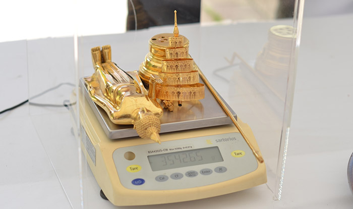 ทั้งนี้ทีมนักวิทยาศาสตร์ได้นำแผ่นทองคำมาตรฐานที่มีความบริสุทธิ์ต่างๆ ตั้งแต่ 24 กะรัต, 21 กะรัต, 18 กะรัต, 14 กะรัต และ 9 กะรัต มาวัดลักษณะเดียวกันกับพระพุทธรูปเพื่อเทียบความบริสุทธิ์ของทองคำ