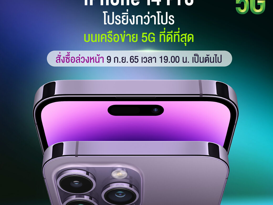 ได้แก่ iPhone 14, iPhone 14 Plus, iPhone 14 Pro และ iPhone 14 Pro Max รวมถึง Apple Watch Series 8 ใหม่และ Apple Watch SE ที่มาพร้อมเทคโนโลยีสุดล้ำและประสิทธิภาพอันทรงพลัง, Apple Watch Ultra ที่ได้รับการออกแบบใหม่หมด มาพร้อมขีดความสามารถใหม่ๆ ที่ไม่ธรรมดา และ AirPods Pro รุ่นที่ 2 ซึ่งถือเป็น AirPods ที่ล้ำหน้าที่สุดเท่าที่เคยมี ลูกค้าสามารถสั่งจอง iPhone ทุกรุ่นล่วงหน้ากับ AIS ได้ตั้งแต่วันที่ 9 กันยายน 2565 เวลา 19.00 น. โดย iPhone 14, iPhone 14 Pro และ iPhone 14 Pro Max จะเริ่มวางจำหน่ายในวันที่ 16 กันยายน 2565 เวลา 8.00 น. และ iPhone 14 Plus ในวันที่ 7 ตุลาคม 2565 ดูรายละเอียดเพิ่มเติมได้ที่ https://www.ais.th/apple/iphone-14-pro-max/