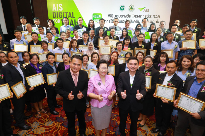 เอไอเอส ร่วมกับกระทรวงดิจิทัลเพื่อเศรษฐกิจและสังคม และกระทรวงสาธารณสุขจัดพิธีมอบรางวัลโครงการ “ประกวดการใช้งานแอปพลิเคชัน อสม.ออนไลน์” ตอกย้ำวิสัยทัศน์“AIS Digital For Thais” โดยมุ่งหวังให้ อสม.มีความรู้ ความสามารถในการใช้เทคโนโลยีดิจิทัลเพื่อนำไปประยุกต์ในการทำงานสาธารณสุข อันก่อให้เกิดการยกระดับการดูแลสุขภาพของคนไทย เพื่อก้าวสู่ไทยแลนด์ 4.0