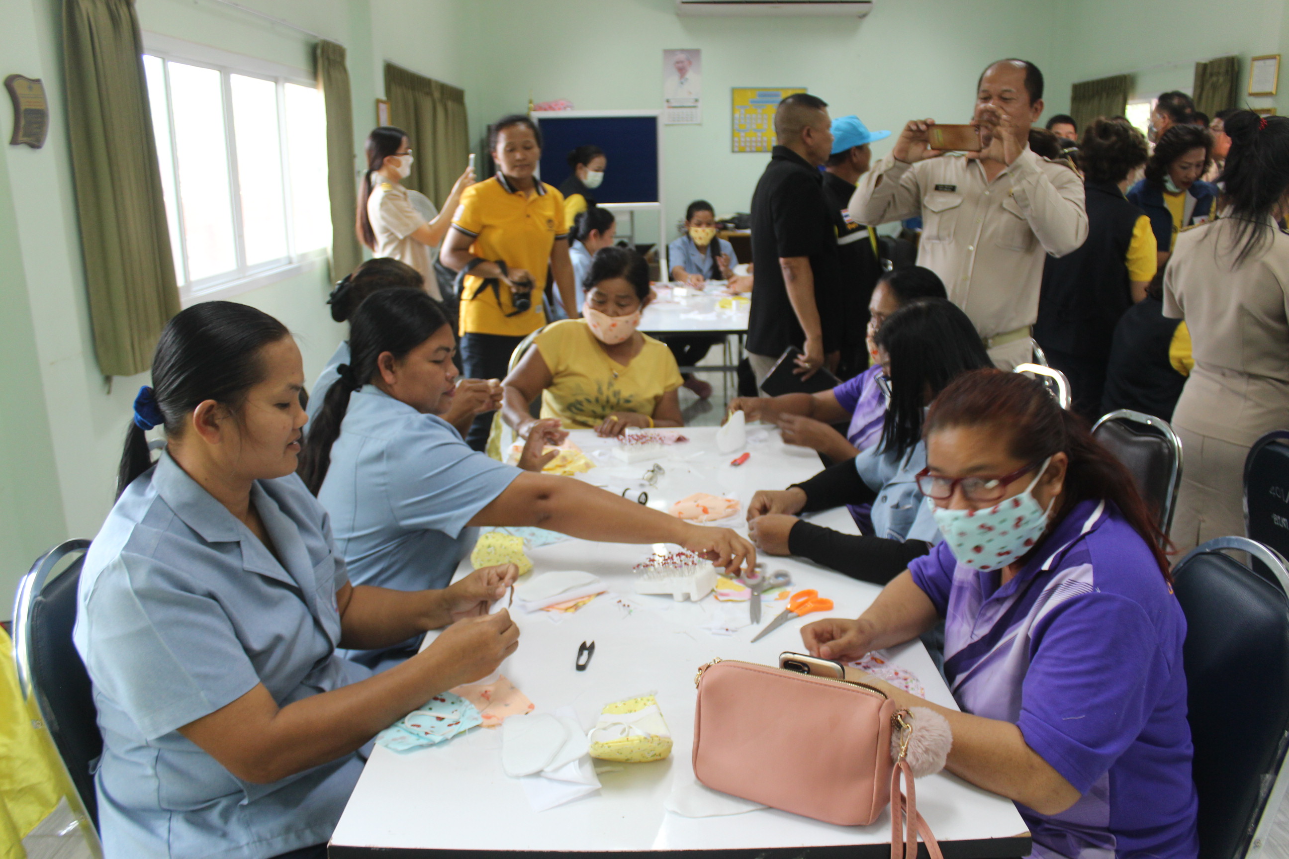 วันนี้ (17 มี.ค.) นายวิเชียร จันทรโณทัย ผู้ว่าราชการจังหวัดนครราชสีมา เดินทางไปตรวจเยี่ยมโครงการอบรมเชิงปฏิบัติการให้ความรู้ในการป้องกันโรคไวรัสโคโรนา 2019 หรือ โควิด - 19 และการอบรบจัดทำหน้ากากผ้าเพื่อป้องกันตนเอง ที่องค์การบริหารส่วนตำบลละลมใหม่พัฒนา อ.โชคชัย จ.นครราชสีมา โดยมีผู้ที่สนใจเข้าร่วมโครงการเป็นจำนวนมาก โดยเฉพาะการอบรมจัดทำหน้ากากผ้าแทนหน้ากากอนามัยที่กำลังขาดแคลนอยู่ในขณะนี้