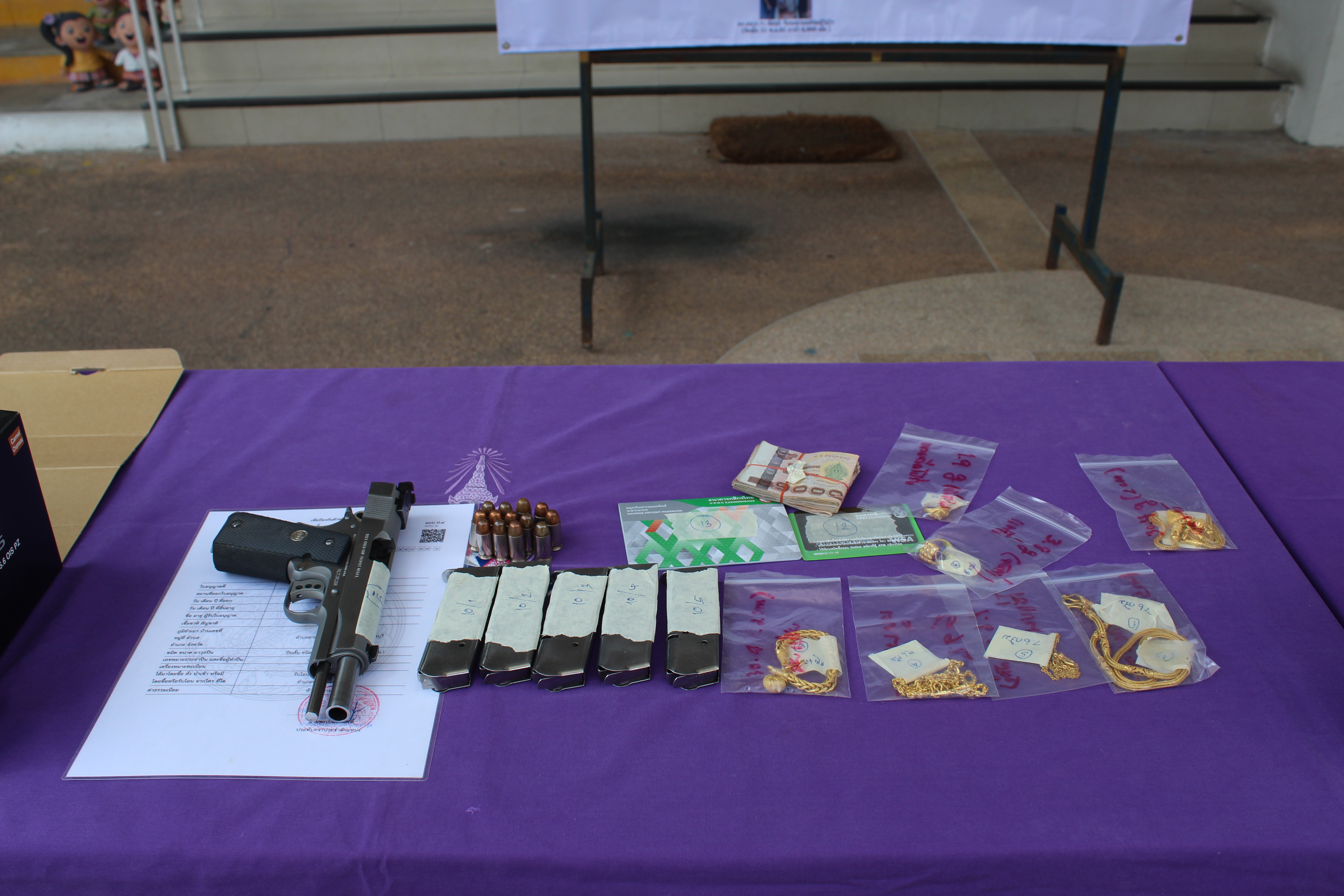 จากการสอบสวนผู้ต้องหา ให้การปฏิเสธตลอดข้อกล่าวหาโดยให้การว่าได้เงินมาจากการเล่นการพนันและถูกหวย ได้ตรวจยึดเงินสด จำนวน 41,000 บาท,สร้อยคอทองคำรูปพรรณน้ำหนัก 10 บาท มูลค่า 200,000 บาท,อาวุธปืนพกสั้นกึ่งอัตโนมัติ ยี่ห้อโคลท์ รุ่นโกลด์คัพมูลค่า 90,000 บาท,รถจักรยานยนต์ยี่ห้อฮอนด้า มูลค่า 20,000 บาท, รถยนต์กระบะ ยี่ห้ออีซูซุ รุ่นดีแมคซ์ มูลค่า 200,000 บาท รวมมูลค่าทรัพย์สินที่ตรวจยึดประมาณ 551,000 บาท