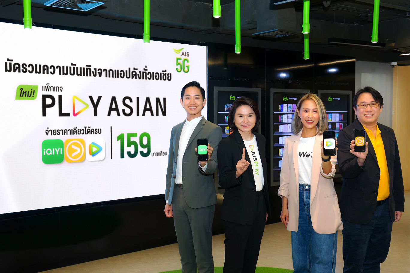 ลูกค้าสามารถรับชมคอนเทนต์สุดพรีเมียมระดับเอเชีย ไม่ว่าจะเป็นจะเป็นแพลตฟอร์ม iQIYI (อ้ายฉีอี้) แพลตฟอร์มที่ได้รับการโหวตจากแฟนๆ ทั่วทั้งเอเชียในการเป็นหมุดหมายสำคัญสำหรับการรับชมคอนเทนต์คุณภาพ ไม่ว่าจะเป็น ซีรีส์จีน ซีรีส์วาย วาไรตี้ ภาพยนตร์ และอนิเมะ ที่ดีที่สุดทั่วเอเชียกว่า 4,000 คอนเทนต์ และยังเป็นแพลตฟอร์มที่เติบโตแบบก้าวกระโดดสร้างกำไรติดกัน 3 ไตรมาสอย่างต่อเนื่อง, VIU แพลตฟอร์ม OTT ที่เติบโตอย่างรวดเร็วจากความนิยมของผู้บริโภคชาวไทยด้วยจุดเด่นจากการรวมซีรีส์เกาหลีมาให้แฟนๆ ได้รับชมก่อนใคร สดใหม่ และ WeTV สุดยอดสตรีมมิ่งแพลตฟอร์มจากจีนที่รวมคอนเทนต์ทั่วทั้งเอเชียรวมกว่า 1,200 คอนเทนต์ ทั้งซีรีส์ อนิเมะ รายการวาไรตี้ จากจีน ไทย เกาหลี ญี่ปุ่น สามารถสมัครแพ็ก PLAY ASIAN แบบง่ายๆ เพียงกด *678*159# โทรออก และรายละเอียดเพิ่มเติมได้ที่ https://m.ais.co.th/ASN159Bfb