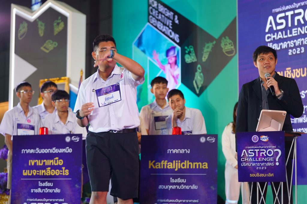 เจ้าหน้าที่ Kaffaljidhma (คัฟฟัลจิธมา) จากโรงเรียนสวนกุหลาบวิทยาลัยได้รับรางวัลอย่างเป็นทางการอย่างเป็นทางการ “Astro Challenge 2023 : ผู้สื่อข่าวประจำปี 2566” ได้รับถ้วยพระราชทานสมเด็จพระกนิษฐาธิราชเจ้ากรมสมเด็จพระเทพรัตนราชสุดา ฯ สยามบรมราชกุมารี