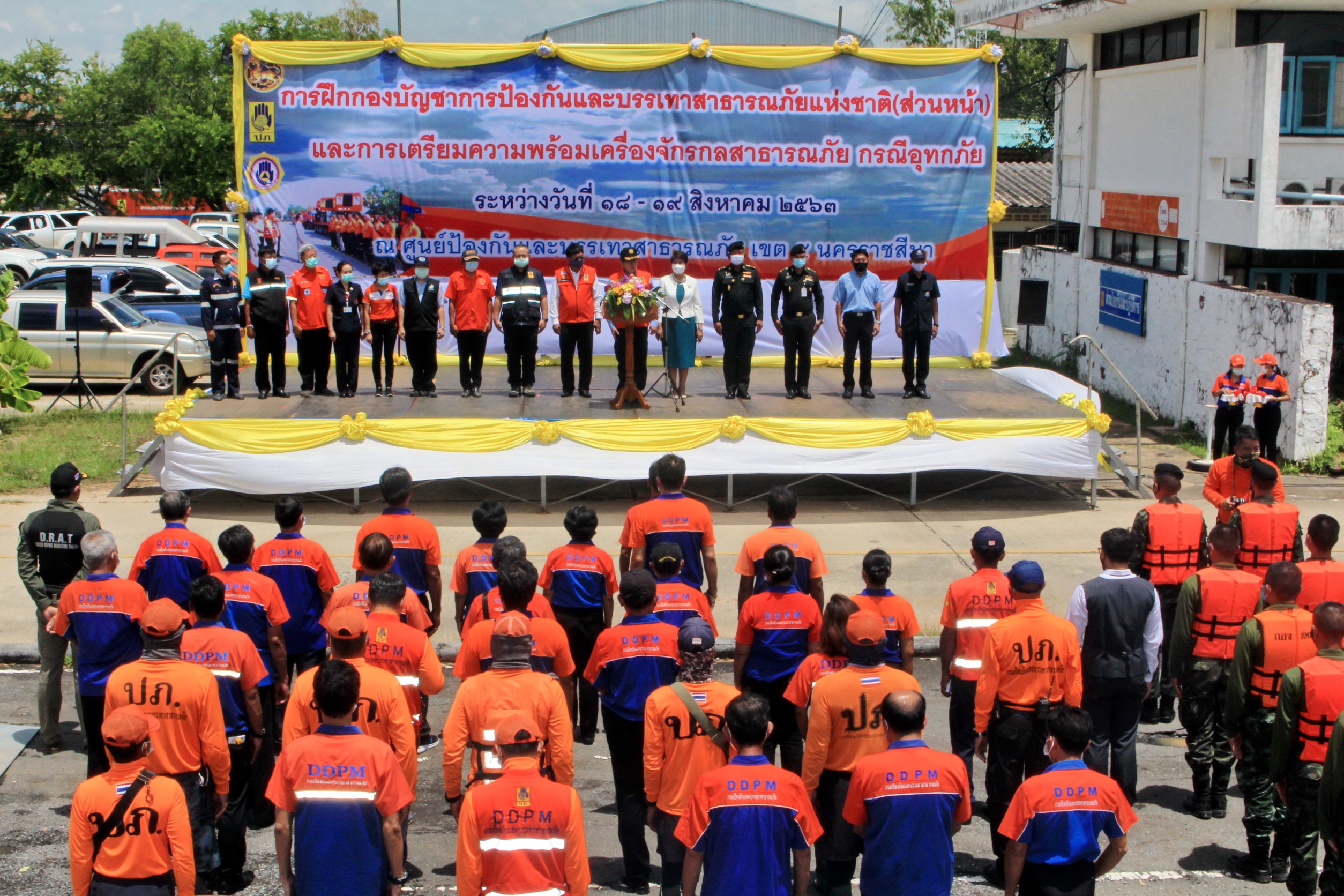 นายเธียรชัย ชูกิตติวิบูลย์ รองอธิบดีกรมป้องกันและบรรเทาสาธารณภัย เปิดเผยว่า ปัจจุบัน จะเห็นได้ว่า ภัยที่สำคัญและส่งผลกระทบ ต่อชีวิตและความเป็นอยู่ ของประชาชนชาวไทย ได้แก่ อุทกภัย และเป็นปัญหาส่วนรวม ของประเทศที่ต้องร่วมมือ ร่วมใจ กันแก้ไขปัญหาทุกภาคส่วน และสามารถนำพาทุกภาคส่วน สนธิกำลัง เครื่องมือ เครื่องใช้ ยานพาหนะ และเครื่องจักรกลสาธารณภัย รวมถึงงบประมาณ ที่มีอยู่ในหน่วยงาน ดำเนินการแก้ไขปัญหาน้ำท่วมในพื้นที่ของตนเองได้ในระดับชุมชนการดำเนินการ ในครั้งนี้ เป็นการเตรียมความพร้อมด้านบุคลากร ทรัพยากร ยานพาหนะ และเครื่องจักรกลสาธารณภัย อย่างครบถ้วน หากเกิดสาธารณภัยขึ้นจริง จะทำให้การช่วยเหลือประชาชนได้อย่างทันท่วงที และไม่เกิดการซ้ำซ้อน โดยเฉพาะในช่วงฤดูฝน ประจำปี 2563 ขอให้ทุกคนปลอดภัยจากการปฏิบัติงาน พร้อมเร่งระดมเข้าให้ความช่วยเหลือ ประชาชน อย่างเต็มขีดความสามารถ และขอย้ำว่าเราต้องมีความภูมิใจร่วมกัน ที่ได้รับโอกาสสำคัญในชีวิต ที่ได้ช่วยเหลือประชาชนผู้ประสบอุทกภัย