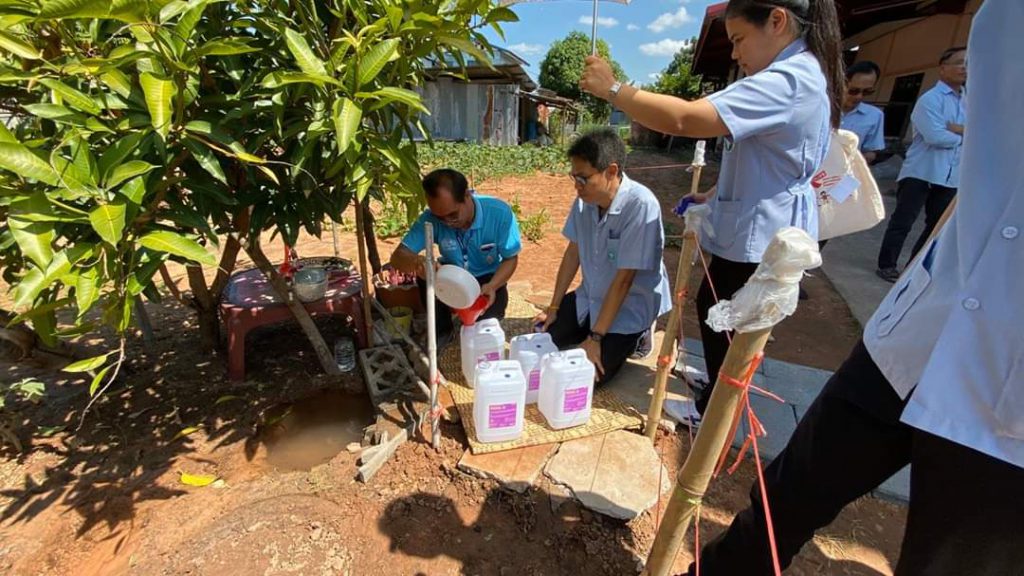 วันนี้ ( 29 ต.ค.62) นพ. นรินทร์รัชต์ พิชญคามินทร์ นายแพทย์สาธารณสุขจังหวัดนครราชสีมา มอบหมายให้ ดร.วีระพล วงษ์ประพันธ์ รักษาการหัวหน้ากลุ่มงานอนามัยสิ่งแวดล้อมและอาชีวอนามัย สสจ.นครราชสีมา พร้อมคณะเจ้าหน้าที่ศูนย์อนามัยที่ 9 นครราชสีมา ลงพื้นที่ตรวจประเมินสถานการณ์กรณี น้ำผุด บ้านรกฟ้า ม.11 ต.ด่านช้าง อ.บัวใหญ่ จ.นครราชสีมา เพื่อสื่อสารป้องกันความเสี่ยงหรือป้องกันโรคติดต่อที่อาจเป็นอันตรายต่อสุขภาพ โดยประสานงาน นายวสุรัตน์ เดชนอก ผู้ช่วย สาธารณสุขอำเภอ (สสอ.)บัวใหญ่ ภก.สุภชัย พงศ์วิลัยรัตน์ หัวหน้ากลุ่มงานเภสัชฯ รพ.บัวใหญ่ รพ.สต.ในสังกัด และ อบต.ด่านช้าง ร่วมตรวจสอบเบื้องต้น และประชาสัมพันธ์ ให้ประชาชนรับทราบ