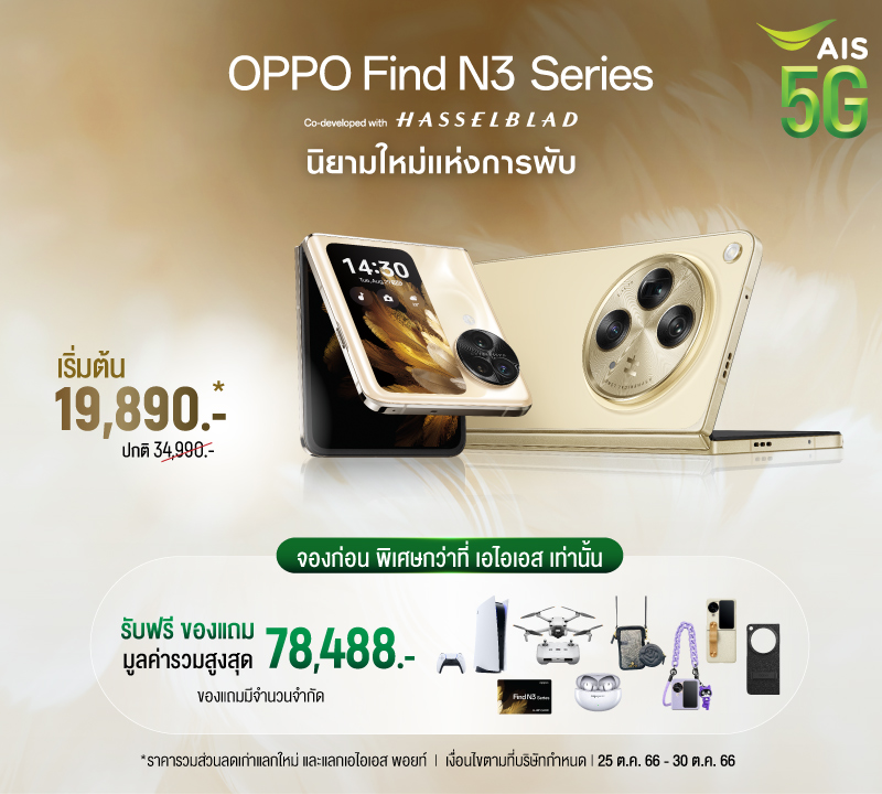 AIS 5G ชวนเปิดประสบการณ์ “พับ” กับกล้องที่ดีกว่าร่วมเป็นเจ้าของ OPPO Find N3 Series จัดเต็มความพิเศษและข้อเสนอที่ดีที่สุดจาก AIS