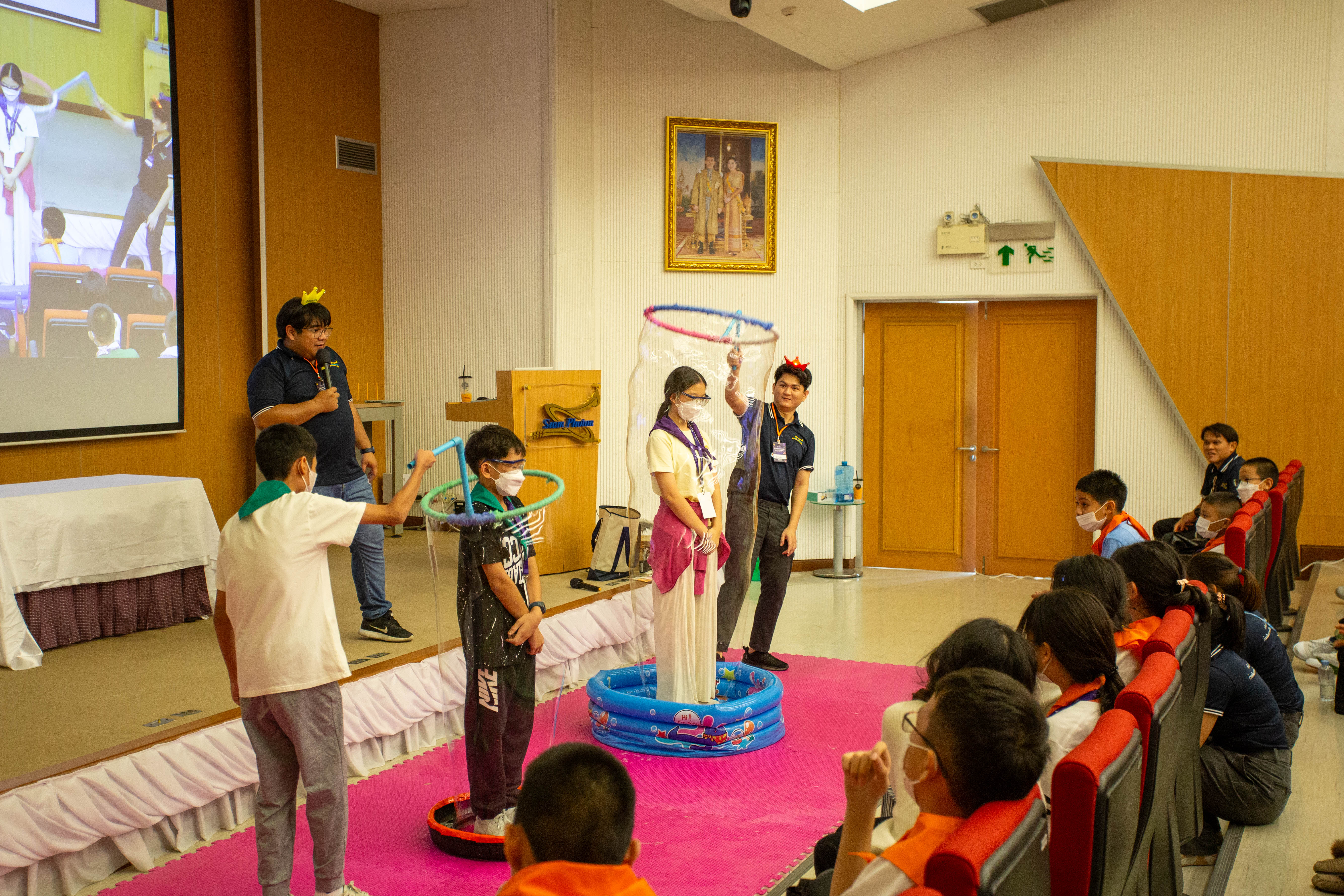 “นอกจากเด็ก ๆ จะได้รับฟังการบรรยายเกี่ยวกับแสงซินโครตรอนแล้ว สถาบันฯ ยังได้เตรียมฐานการทดลองให้นักเรียนทั้งหมด 10 ฐานการทดลอง เพื่อให้นักเรียนได้รับความรู้ผ่านความสนุกสนาน ได้แก่ ฐานกระดิ่งในโหลแก้วเพื่อเรียนรู้เกี่ยวกับตัวกลางของคลื่น ฐานสเปกตรัมของคลื่นแม่เหล็กไฟฟ้าเพื่อเรียนรู้เกี่ยวกับคลื่นแม่เหล็กไฟฟ้า ฐานเครื่องเปลี่ยนทรงผมสุดแนวเพื่อเรียนรู้เกี่ยวกับศักย์ไฟฟ้า ฐานการทำสไลด์เซลล์พืชเพื่อส่องดูใต้กล้องจุลทรรศน์ ฐานเม็ดโฟมเต้นระบำเพื่อเรียนรู้เกี่ยวกับธรรมชาติและพฤติกรรมของคลื่น ฐานสร้างภูเขาไฟระเบิดจากผงฟูและน้ำยาล้างจาน ฐานท่อถ่วงเวลาเพื่อเรียนรู้กฎการเหนี่ยวนำของไมเคิล ฟาราเดย์ ฐานสร้างยาสีฟันช้างเพื่อเรียนรู้การทำงานของตัวเร่งปฏิกิริยาเคมี ฐานถอดรหัสลับด้วยอินดิเคเตอร์เพื่อเรียนรู้เกี่ยวกับความเป็นกรดและเบสอย่างง่าย และฐานสุดพิเศษ Elsa Trick เพื่อศึกษาการตกผลึกด้วยมายากลของแม่มดเอลซ่า ปิดท้ายด้วยโชว์วิทยาศาสตร์แสนสนุก” ดร.ประพงษ์ คล้ายสุบรรณ์ กล่าว