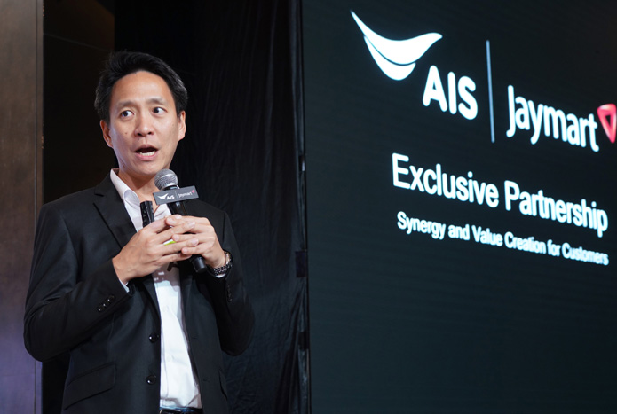 นายปรัธนา ลีลพนัง หัวหน้าคณะผู้บริหารกลุ่มลูกค้าทั่วไป เอไอเอส กล่าวว่า“วันนี้ เรามีเครือข่ายที่ดีที่สุดและครอบคลุมทั่วประเทศ ดังนั้น เราจึงตั้งใจส่งมอบบริการไปยังลูกค้าทั่วประเทศ โดยวางกลยุทธ์ด้านช่องทางจัดจำหน่ายให้เข้าถึงไลฟ์สไตล์ลูกค้าทุกกลุ่มอย่างทั่วถึง ที่ผ่านมา เราประสบความสำเร็จกับการทำงานร่วมกับพาร์ทเนอร์ในหลายอุตสาหกรรม รวมถึงสร้างปรากฎการณ์ผ่านความร่วมมือกับไฮเปอร์มาร์ท และโมเดิร์นเทรดมาแล้ว วันนี้เป็นความยินดีอย่างยิ่งที่ได้ร่วมกับเจมาร์ท เบอร์ 1 ของธุรกิจค้าปลีกดิจิทัล โดยเรามองเห็นโอกาสและความแข็งแกร่งของเจมาร์ทและธุรกิจในเครือที่หลากหลาย ซึ่งความร่วมมือครั้งนี้เรียกว่า Win-Win ทุกฝ่าย คือ เอไอเอสขยายช่องทางในการนำเสนอสินค้าและบริการเข้าถึงลูกค้าในระดับลงลึกมากขึ้น และยังร่วมกันทำแคมเปญการตลาดอีกมากมาย แน่นอนว่าประโยชน์สูงสุดจะเป็นของลูกค้าที่ได้สัมผัสบริการที่พิเศษยิ่งขึ้นกว่าเคย ในอนาคตเอไอเอส และบริษัทในเครือเจมาร์ท จะขยายผลความร่วมมือเพื่อมอบบริการใหม่ๆ ให้ลูกค้าอย่างต่อเนื่อง ซึ่งจะทยอยเปิดตัวในเร็วๆ นี้”