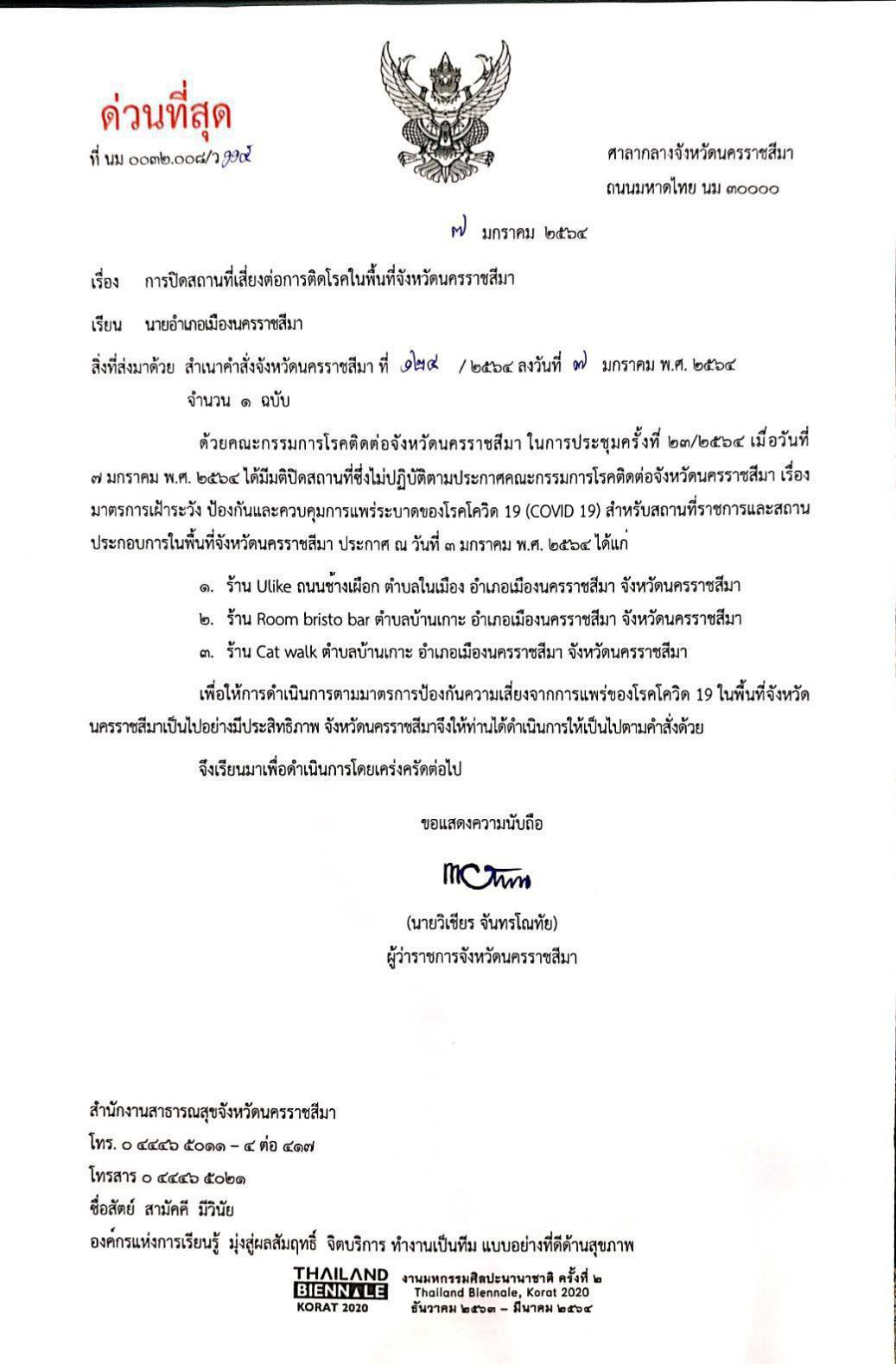 เชือดไก่ให้ลิงดู! ผู้ว่าฯ โคราชสั่งปิดสถานบันเทิงดัง 3 แห่ง แหกกฏหมายละเลยควบคุมโรค สั่งเข้ม4ด่านตรวจสกัดแรงงานต่างด้าวลักลอบเข้าพท.และบุคคลมาจาก28จังหวัดเสี่ยงสูง ส่วนยอดผู้ป่วยโควิด-19 ยังนิ่งอยู่ที่ 9 รายรักษาหาย 5 ราย แนะปิด รร. ต่ออีก 1 สัปดาห์ โดยให้อำนาจ ผอ. พิจารณา