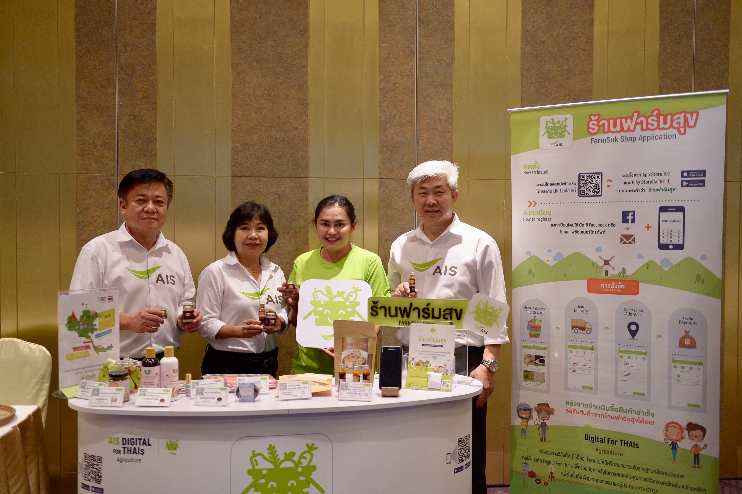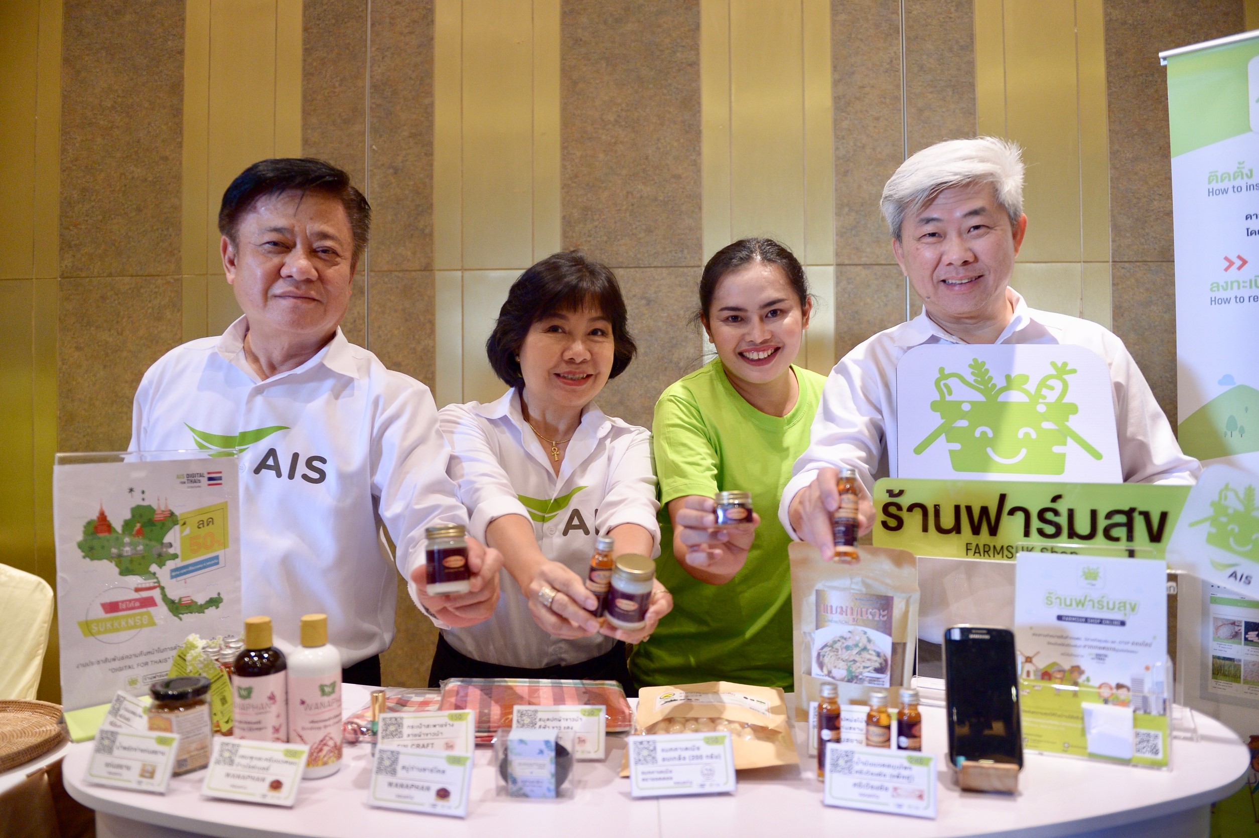 นอกจากนี้ ยังได้สร้างช่องทางตลาดออนไลน์ผ่านแอปพลิเคชัน “ร้านฟาร์มสุข” ให้เกษตรกรสามารถขายผลผลิตทางการเกษตรและผลิตภัณฑ์เกษตรแปรรูป รวมถึงสินค้าที่เป็นภูมิปัญญาของชุมชนหรือ OTOP โดยเอไอเอสมีทีมงานที่ช่วยบริหารจัดการให้เข้าถึงเทคโนโลยีและช่องทางการจัดจำหน่าย ทั้งการแนะนำการทำตลาดออนไลน์ การปรับปรุงผลิตภัณฑ์ การถ่ายภาพสินค้าให้น่าสนใจ เพื่อเป็นการสร้างมูลค่าเพิ่มให้แก่สินค้า สร้างโอกาส สร้างรายได้ และยกระดับการจำหน่ายสินค้าของกลุ่มวิสาหกิจชุมชนเข้าสู่ช่องทางออนไลน์ สอดรับกับนโยบายการขับเคลื่อนเศรษฐกิจดิจิทัลไปสู่ไทยแลนด์ 4.0 ของภาครัฐอย่างแท้จริง
