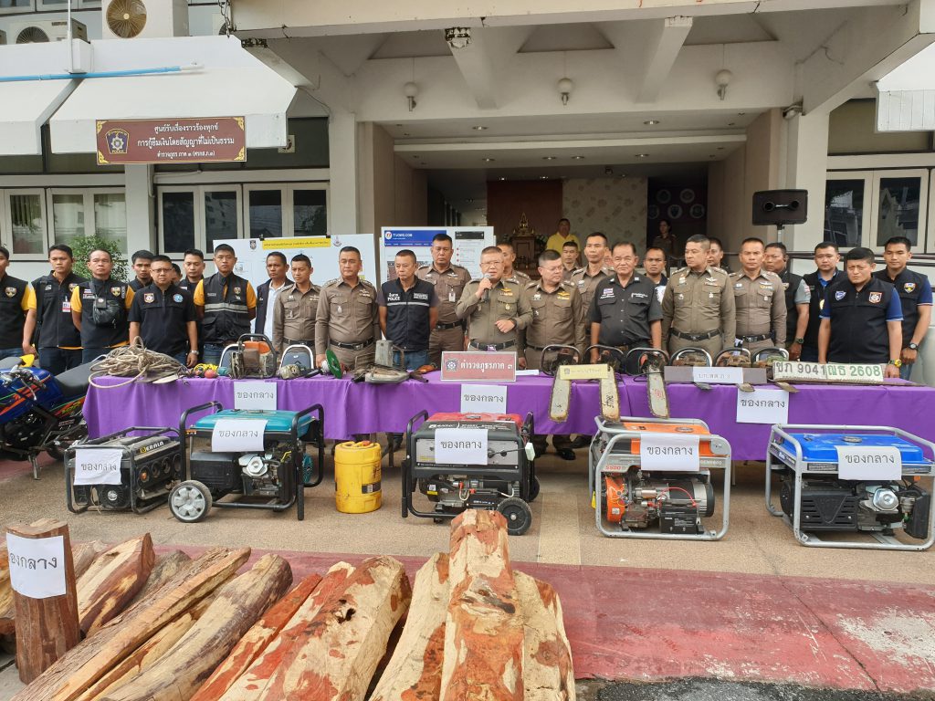 ทั้งนี้สืบเนื่องจากเจ้าหน้าที่ตำรวจกองบังคับการสืบสวนสอบสวน ตำรวจภูธรภาค 3 และ ตำรวจภูธรจังหวัดบุรีรัมย์ ได้สืบทราบว่ามีกลุ่มคนร้ายที่ตระเวนลักลอบตัดไม้พะยูง ตามโรงเรียน วัด สวนสาธารณะ และที่ส่วนบุคคลในเวลากลางคืนในเขต จังหวัดบุรีรัมย์ และ จังหวัดใกล้เคียง จนชาวบ้านได้รับความเดือดร้อน เจ้าหน้าที่ได้สืบสวนจนทราบแน่ชัดว่ากลุ่ม ที่ก่อเหตุดังกล่าวเป็นกลุ่มใด จึงรวบรวมพยานหลักฐานเพื่อขอหมายค้นต่อศาลจังหวัดบุรีรัมย์ (หมายค้นที่ 1121/2561, 1122/2561, 1123/2561 และ 1124/2561 ลงวันที่ 7 พฤศจิกายน 2561 เข้าตรวจค้นเป้าหมายกลุ่มขบวนการลักลอบตัดไม้พะยูง ในเขตพื้นที่จังหวัดบุรีรัมย์ สามารถ จับกุมผู้ต้องหาได้จำนวน 7 คน พร้อมแจ้งข้อกล่าวหา “ภายในเขตควบคุมการแปรรูปไม้ ร่วมกันมีไม้หวงห้ามประเภทไม้พะยูงไว้ในความครอบครอง โดยไม่ได้รับอนุญาต,มีเลื่อยโซ่ยนต์ไว้ในความครอบครองโดยไม่ได้รับอนุญาต จากนายทะเบียนฯ” ประกอบด้วย