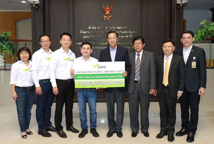 AIS ชำระเงินค่าใบอนุญาตคลื่นความถี่ย่าน 1800 MHz งวดที่ 3 มูลค่า 10,963,755,000 บาท (รวมภาษีมูลค่าเพิ่ม) ในนาม AWN บริษัทในเครือฯซึ่งเป็นผู้ชนะการประมูลคลื่นความถี่ 1800 MHzตามประกาศกสทช. เพื่อนำเงินดังกล่าวส่งเป็นรายได้ของแผ่นดิน และนำไปยกระดับความแข็งแกร่งของโครงสร้างพื้นฐานด้านโทรคมนาคมในประเทศไทย รวมถึงการพัฒนาประเทศในด้านอื่นๆให้สอดคล้องกับนโยบายของภาครัฐในการสนับสนุนให้ประเทศก้าวสู่ไทยแลนด์ 4.0นายสมชัย เลิศสุทธิวงค์ ประธานเจ้าหน้าที่บริหาร บริษัท แอดวานซ์ อินโฟร์ เซอร์วิส จำกัด (มหาชน) หรือเอไอเอส (ที่ 4 จากซ้าย) ในฐานะรักษาการกรรมการผู้จัดการบริษัท แอดวานซ์ ไวร์เลส เน็ทเวอร์ค จำกัด (AWN)บริษัทในเครือฯ ผู้ชนะการประมูลคลื่นความถี่ 1800 MHz (1725-1740/1820-1835 MHz) และเป็นผู้ให้บริการดิจิทัล ไลฟ์ เซอร์วิส โพรวายเดอร์ ที่ถือครองคลื่นความถี่ที่ได้รับจาก กสทช.มากที่สุดในอุตสาหกรรมโทรคมนาคมถึง 120 MHz (60MHzx2) พร้อมคณะผู้บริหารเข้าชำระเงินค่าใบอนุญาตคลื่นความถี่ย่าน 1800 MHz งวดที่ 3 ซึ่งเป็นงวดสุดท้าย เป็นจำนวน 10,963,755,000 บาท(รวมภาษีมูลค่าเพิ่ม)ให้กับสำนักงานคณะกรรมการกิจการกระจายเสียง กิจการโทรทัศน์ และกิจการโทรคมนาคมแห่งชาติ หรือกสทช. โดยมี พลเอกสุกิจ ขมะสุนทร ประธานคณะกรรมการ กสทช.(ที่ 5 จากซ้าย) เป็นผู้รับมอบ เพื่อนำเงินดังกล่าวส่งเป็นรายได้ของแผ่นดิน และนำไปยกระดับความแข็งแกร่งของโครงสร้างพื้นฐานด้านโทรคมนาคมในประเทศไทย และพัฒนาประเทศในด้านอื่นๆอันเป็นการสนับสนุนให้ประเทศก้าวสู่ไทยแลนด์4.0 ต่อไป