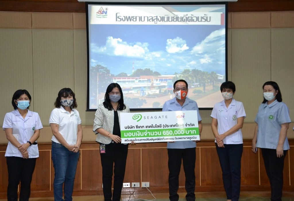 เมื่อเร็ว ๆ นี้ นางเพียงฤทัย ศิวารัตน์ รองประธานฝ่ายปฏิบัติการโรงงานโคราชและผู้จัดการประจำประเทศไทย บริษัท ซีเกท เทคโนโลยี (ประเทศไทย) จำกัด (ที่ 3 จากซ้าย) มอบเงินจำนวน 650,000 บาท เพื่อปรับปรุงโครงสร้างคลินิกทันตกรรมโรงพยาบาลสูงเนิน ให้เป็นไปตามมาตรฐานการรักษาทางทันตกรรมในสถานการณ์การแพร่ระบาดของโรคโควิด-19 โดยมีนายแพทย์วิชาญ คิดเห็น รองนายแพทย์สาธารณสุขจังหวัดนครราชสีมา และผู้อำนวยการโรงพยาบาลสูงเนิน (ที่ 4 จากซ้าย) เป็นตัวแทนรับมอบ