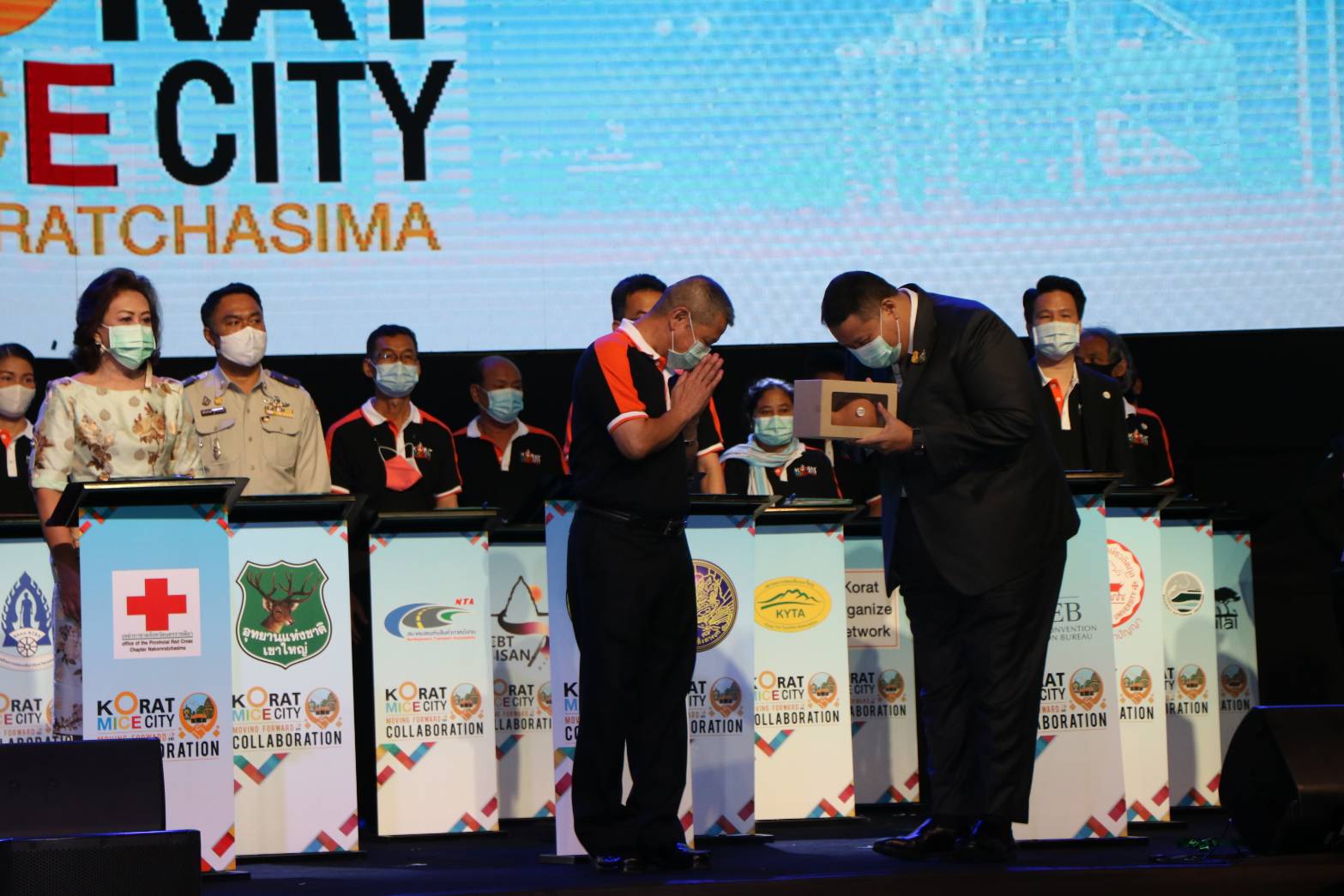 วันนี้ (10 ก.พ.) เวลา 10.30 น.ที่เทอร์มินอล ฮอลล์ ชั้น 4  ศูนย์การค้าเทอมินอล 21 โคราช นายจรัสชัย โชคเรืองสกุล  รองผู้ว่าราชการจังหวัดนครราชสีมา พร้อมนายจิรุตถ์  อิศรางกูร ณ อยุธยา ผู้อำนวยการ สำนักงานส่งเสริมการจัดประชุมและนิทรรศการองค์การมหาชน หรือทีเส็บ ,ผู้ช่วยศาสตราจารย์ดร. ณัฎฐีนีท องดีผู้อำนวยการศูนย์ส่งเสริมการจัดประชุมและนิทรรศการนครราชสีมา  ร่วมกันจัดพิธีลงนามบันทึกข้อตกลงความร่วมมือในการขับเคลื่อนเมืองไมซ์ซิตี้และยกระดับศักยภาพของเมืองและอุตสาหกรรมไมซ์ (MICE) ได้แก่การจัดประชุมองค์การ (Meeting) การจัดการท่องเที่ยวเพื่อเป็นรางวัล (Incentive) การจัดประชุมขนาดใหญ่ (Convention) และการจัดแสดงสินค้าและนิทรรศการ (Exhibition) รวมถึงการจัดงาน (Event) โดยประสานภาคีเครือข่ายองค์กรภาครัฐและเอกชนในการพัฒนาโคราชเมืองไมซ์ซิตี้รวม 47 องค์กร ภายใต้โครงการ Korat MICE City Moving Forward Collaboration นำโดย จังหวัดนครราชสีมา สำนักงานส่งเริมการจัดประชุมและนิทรรศการ องค์การมหาชน หน่วยงานภาครัฐ เอกชน สถาบันการศึกษารวมทั้งหน่วยงานการกุศล สมาคมสมาพันธ์สื่อมวลชนพันธมิตรนครราชสีมา  เป็นต้น