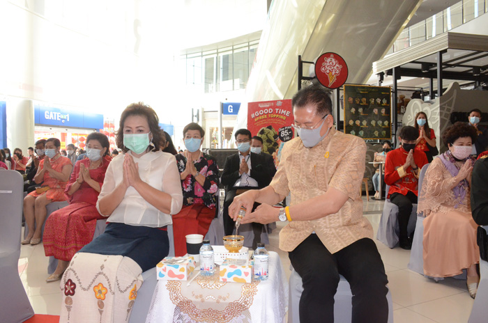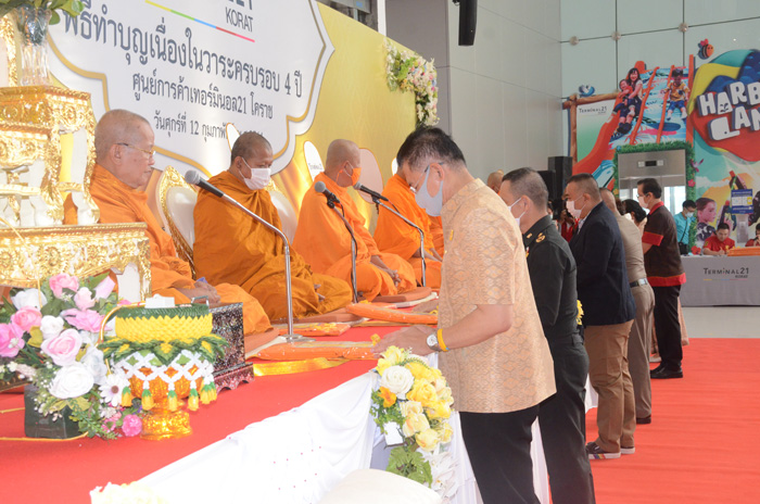 โดยมีผู้แทนแม่ทัพภาคที่ 2 ผู้แทนผู้บัญชาการตำรวจภูธรภาค 3 ผู้แทนผู้บังคับการตำรวจภูธรจังหวัดนครราชสีมา พร้อมหัวหน้าส่วนราชการ ทหาร ตำรวจ ภาครัฐภาคเอชน มูลนิธิร่วมกันประกอบพิธี โดยมี น.ส.ปพิชญา ณ นครพนม ผู้อำนวยการศูนย์การค้าเทอร์มินอล 21 โคราช นำพนักงานคอยต้อนรับ และร่วมกันประพรมน้ำพระพุทธมนต์ ถวายเพลแด่พระสงฆ์ 9 รูป