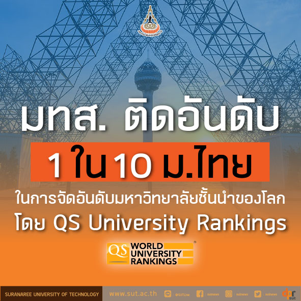 สุดยอด! มทส. ติด 1 ใน 10 มหาวิทยาลัยไทยในการจัดอันดับ ม.ชั้นนำของโลก โดย QS University Rankings
