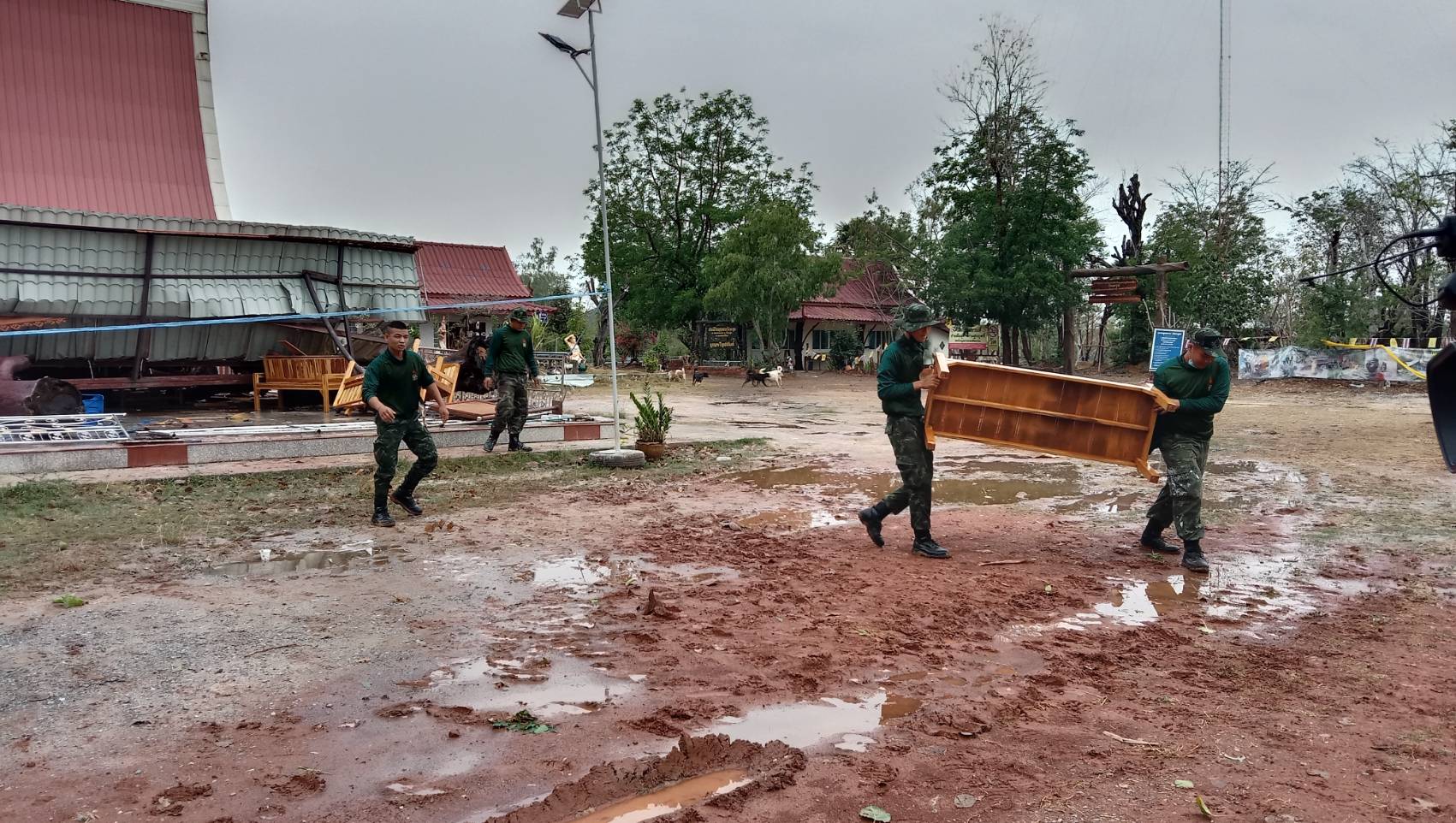 ทหารเร่งช่วยประชาชนโคราชถูกพายุฤดูร้อนถล่ม ระดมกำลังซ่อมศาลาวัด 300 ปีโนนสูง