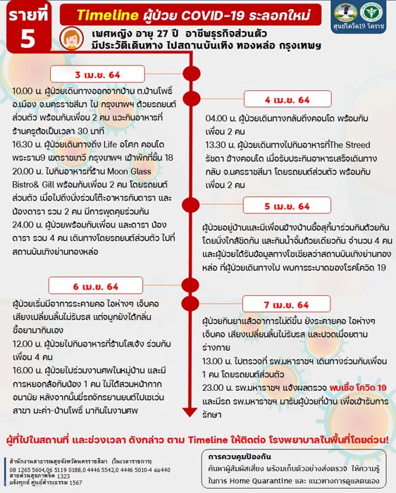 ส่องไทม์ไลน์ผู้ป่วยโควิด! โคราชพบผู้ป่วยติดเชื้อโควิด-19 รวดเดียว 6 ราย เชื่อมโยงคลัสเตอร์ใหญ่สถานบันเทิงที่กรุงเทพฯ