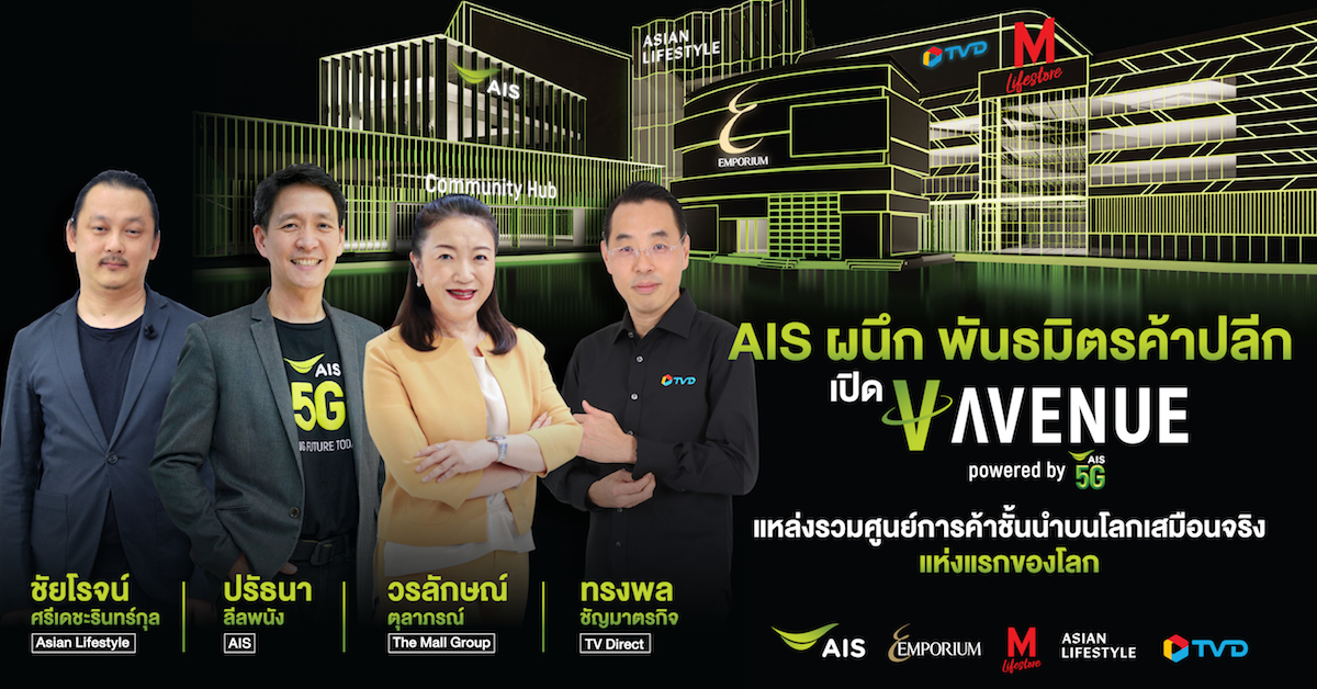“เรารู้สึกภูมิใจเป็นอย่างยิ่งที่ได้ร่วมมือกับพาร์ทเนอร์ภาคอุตสาหกรรมค้าปลีกชั้นนำที่มีวิสัยทัศน์เดียวกัน อย่างบริษัท เดอะมอลล์ กรุ๊ป จำกัด, บริษัท ซิตี้มอลล์ กรุ๊ป จำกัด (ดิ เอ็มโพเรียม), บริษัท ทีวีไดเร็ค จำกัด(มหาชน) และกลุ่มแบรนด์ไลฟ์สไตล์รีเทลชั้นนำ Loft ,Jung Saem Mool ,ALAND ร่วมปฏิวัติวงการอุตสาหกรรมค้าปลีก และยกระดับบริการออนไลน์ของประเทศไทยให้ก้าวหน้าไปอีกขั้น กับเวอร์ชวลพรีเมียมช็อปปิ้งแพลตฟอร์ม V-Avenue.Co powered by AIS 5G แหล่งรวมศูนย์การค้าเสมือนจริงแห่งแรกของโลก นำเทคโนโลยีที่ล้ำสมัยอย่าง Virtual Reality (VR) มาผสานกับโครงข่ายที่ทันสมัยที่สุดและดีที่สุด อย่าง AIS 5G ให้ลูกค้าสามารถเดินเลือกซื้อสินค้าได้อย่างอิสระเสมือนอยู่ในห้างและถนนแห่งการช้อปปิ้งจริง ผ่านเว็บไซต์ V-Avenue.Co ที่อำนวยความสะดวก รวดเร็วให้กับลูกค้าไม่ว่าจะอยู่ที่ไหนในโลก ก็สามารถช้อปปิ้ง สินค้าภายในห้างสรรพสินค้าชั้นนำได้อย่างสะดวกเพียงปลายนิ้วสัมผัส สอดรับพฤติกรรมนักช้อปแห่งยุคนิวนอร์มัล ได้คลิกซื้ออย่างปลอดภัย ไม่ต้องเดินทาง”