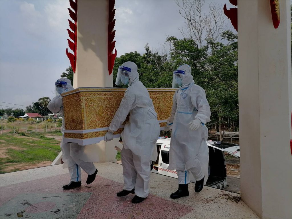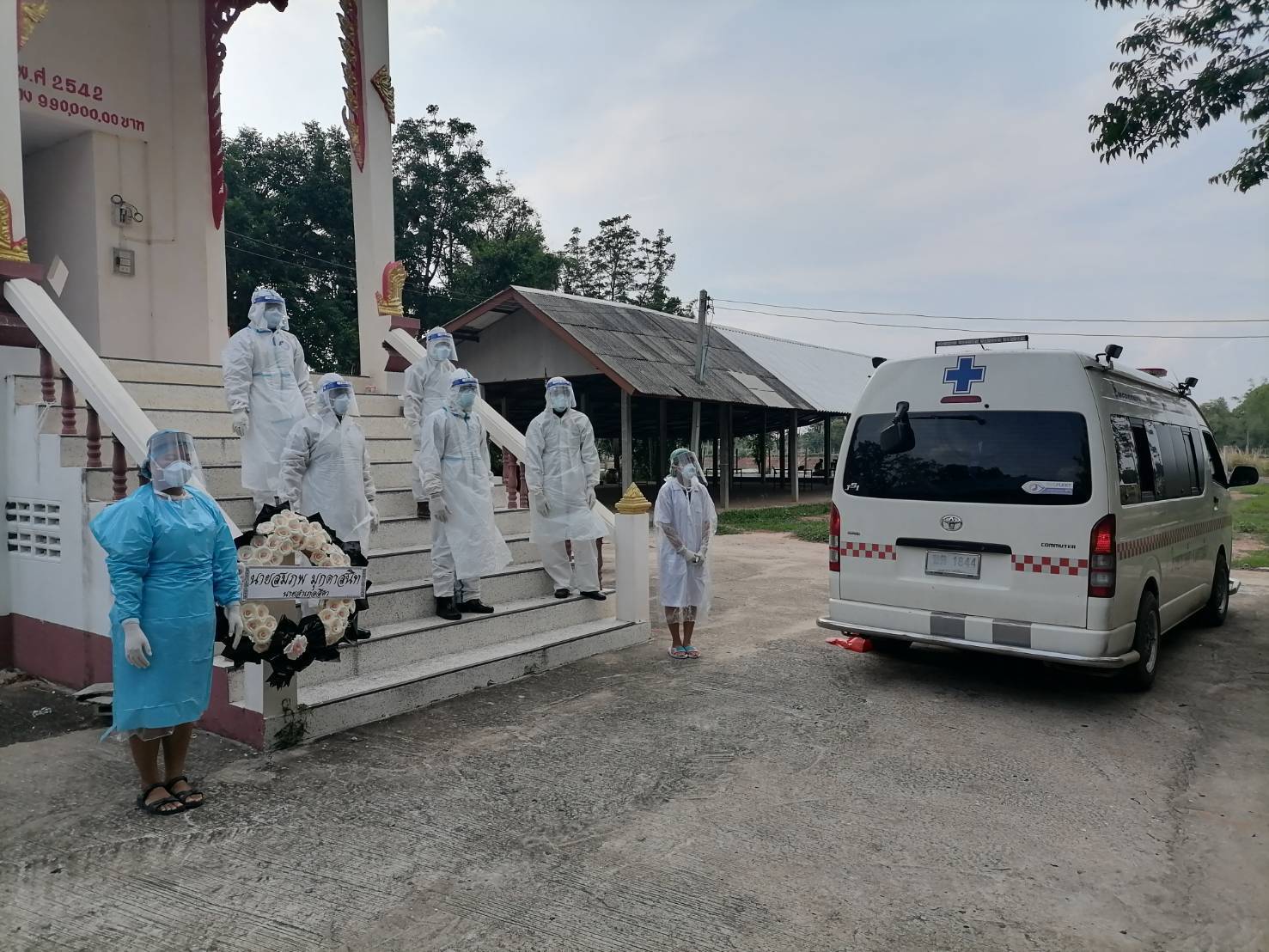 ช่วงบ่ายวันนี้ (5 พ.ค.) อาสาสมัครกู้ภัยฮุก 31 จุด อ.สีดา นำร่างพระสงฆ์วัย 74ปี สังกัดวัดบ้านโนนประดู่ ต.โนประดู่ อ.สีดา จ.นครราชสีมา ที่มรณภาพจากการติดเชื้อโควิด-19 จาก รพ.มหาราชนครราชสีมา มาทำพิธีฌาปนกิจทันที ณ เมรุ วัดบ้านโนนประดู่ อ.สีดา จ.นครราชสีมา ท่ามกลางความเศร้าเสียใจของญาติโยมที่ไม่สามารถเดินทางมาร่วมงานได้