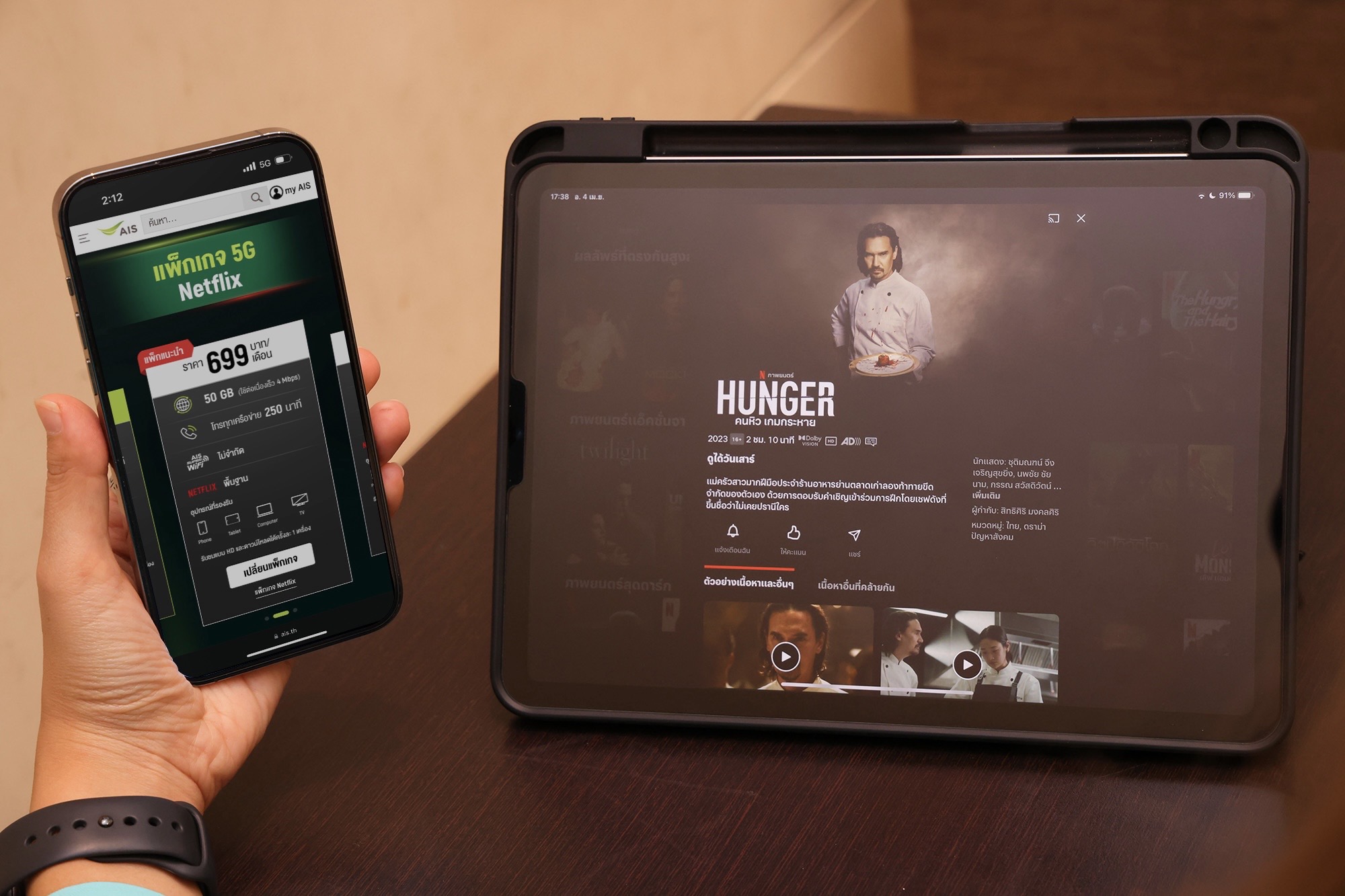AIS เดินหน้ามอบประสบการณ์ความบันเทิงจากคอนเทนต์ระดับโลกจับมือ Netflix ตอกย้ำความเป็น Strategic พาร์ทเนอร์ต่อเนื่องกับบริการสุดพิเศษที่ร่วมกับ AIS พันธมิตรธุรกิจรายแรกให้ลูกค้าได้ชมคอนเทนต์ที่ดีที่สุด บนเครือข่ายดีที่สุดด้วย AIS 5G Netflix แพ็กเกจรายเดือน แพ็กคู่ ที่มาพร้อมกันทั้งค่าบริการรายเดือนของโพสต์เพดและค่าสมาชิก Netflix เพิ่มช่องทางการเป็นสมาชิก ที่สะดวก ง่าย ไม่ยุ่งยาก ในบิลเดียว  พร้อมต้อนรับการมาถึงของสุดยอดภาพยนตร์แห่งปีที่เฝ้ารอกับ HUNGER คนหิว เกมกระหาย” ที่จะเสิร์ฟความร้อนแรงท่ามกลางสมรภูมิอาหาร พร้อมสัมผัสกับอีกด้านมืดที่ซ่อนอยู่เบื้องหลังอาหารจานหรู